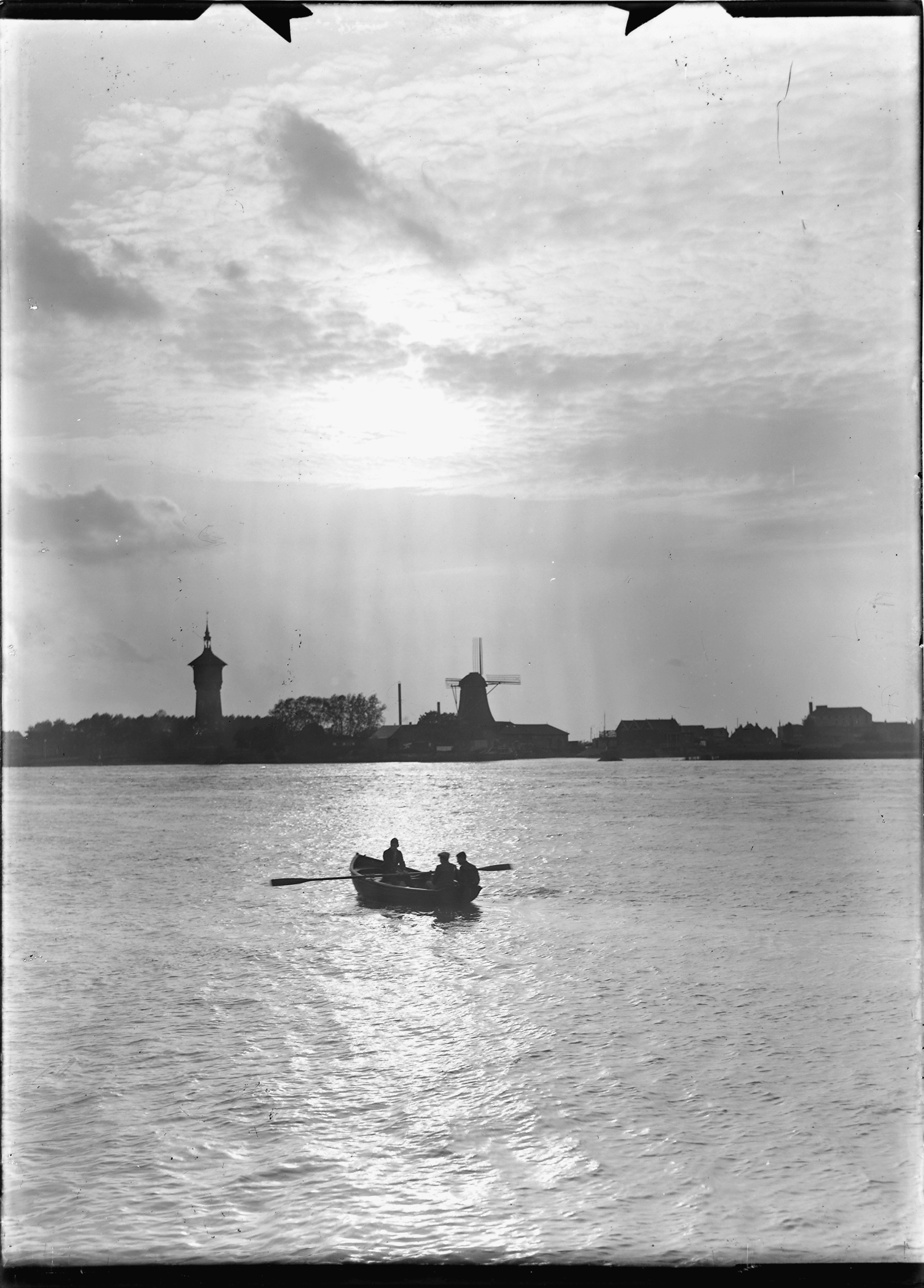 De Oude Maas ter hoogte van de Wolwevershaven. Op de achtergrond de watertoren en molen …