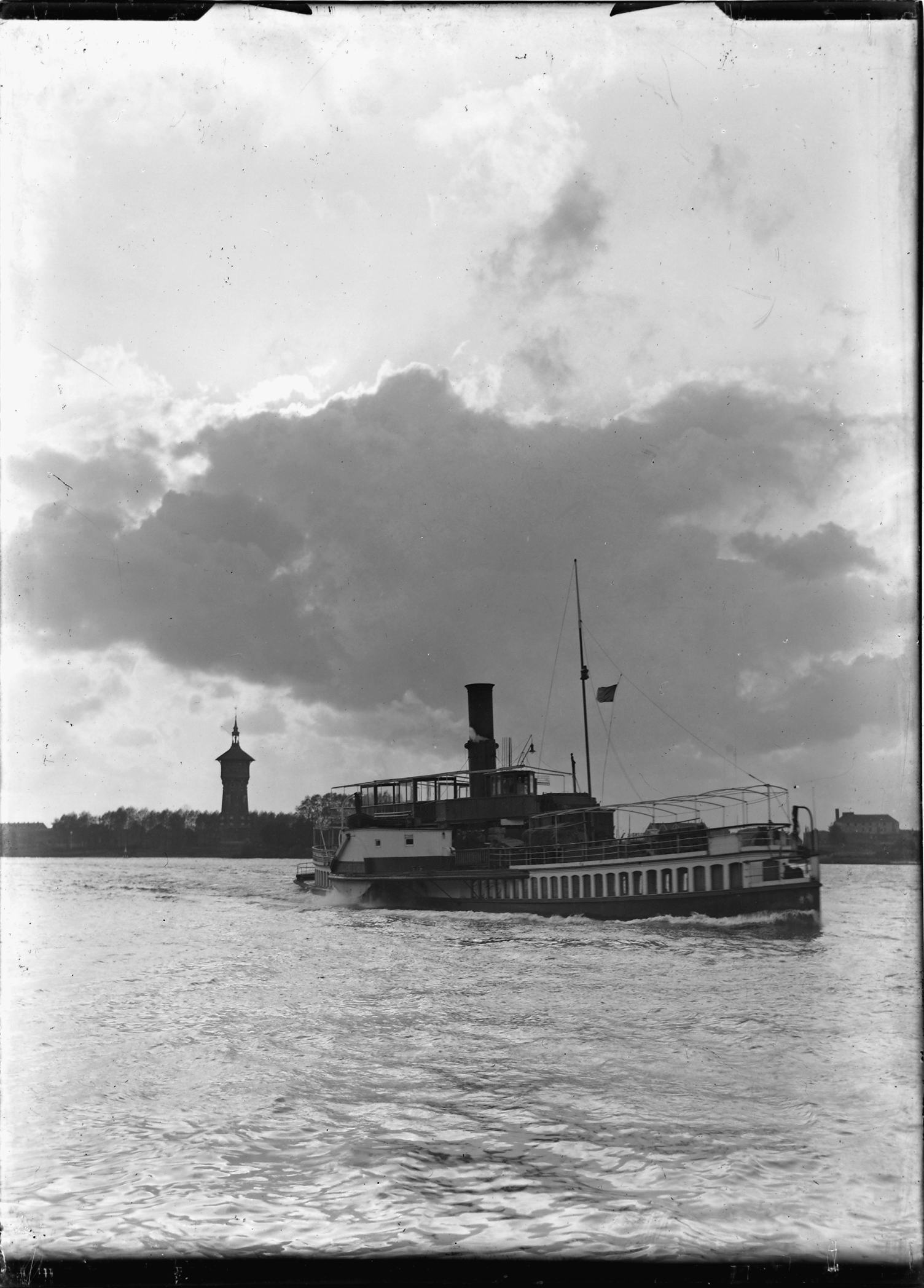 - Stoomraderboot op de Oude Maas ter hoogte van de Wolwevershaven. Op de achtergrond de watertoren in Zwijndrecht.