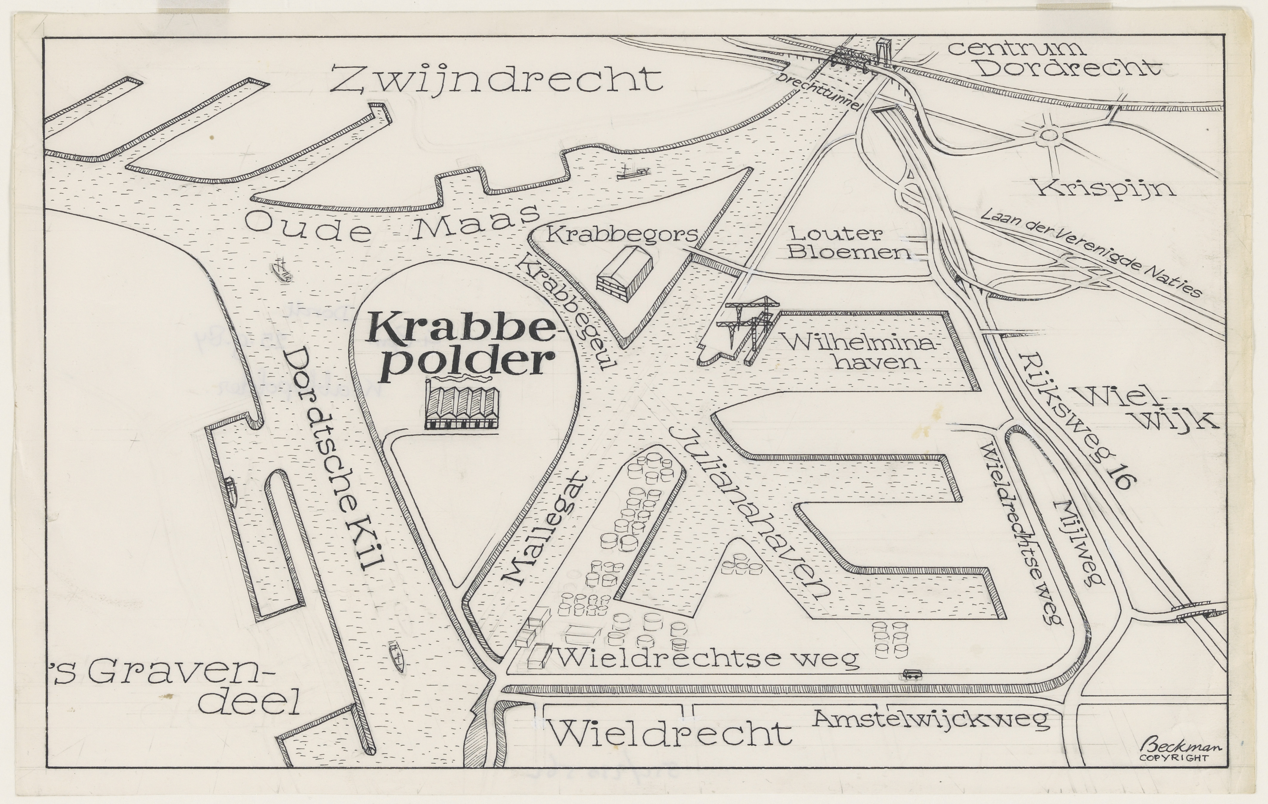 - Overzicht Krabbepolder, Krabbegors, Wilhelmina- en Julianahaven.