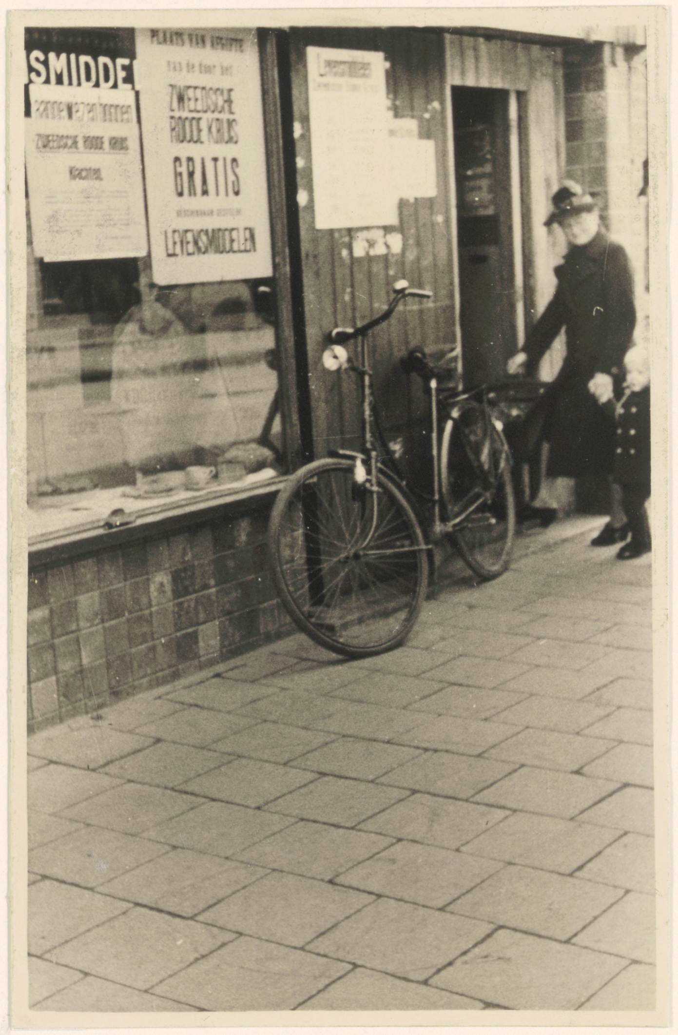 - etalages fietsen / rijwielen kruidenierswinkels oorlogstijd voedseldistributies