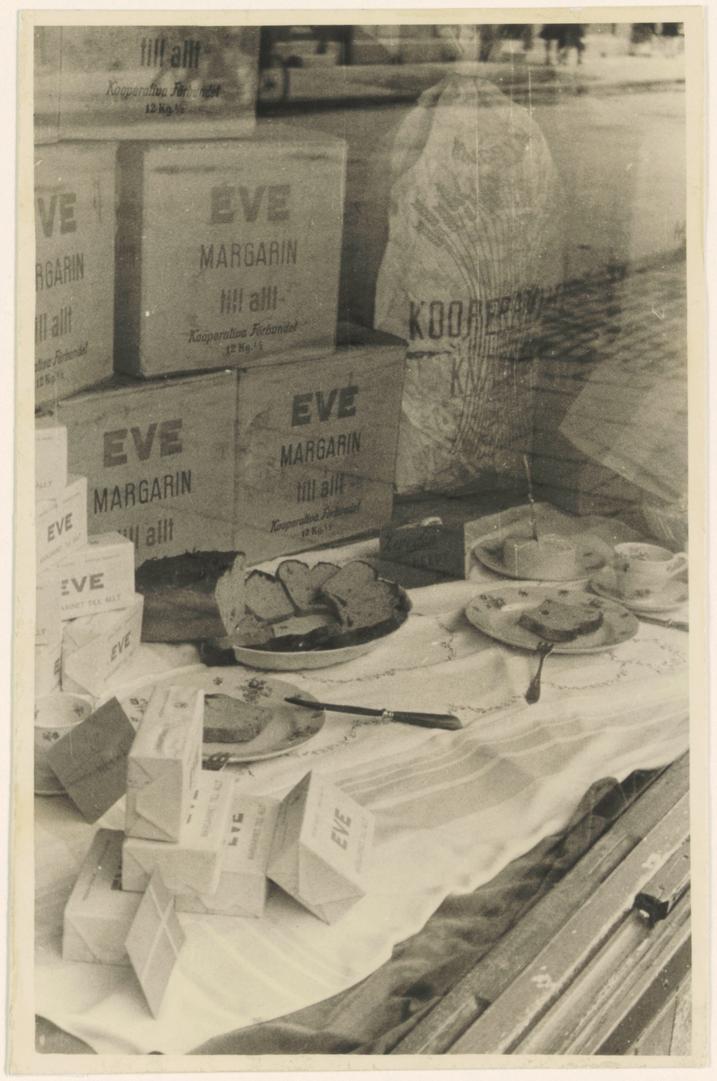 Uitdeling van Zweedse margarine en Zweeds wittebrood in de winkel voor koloniale waren, …