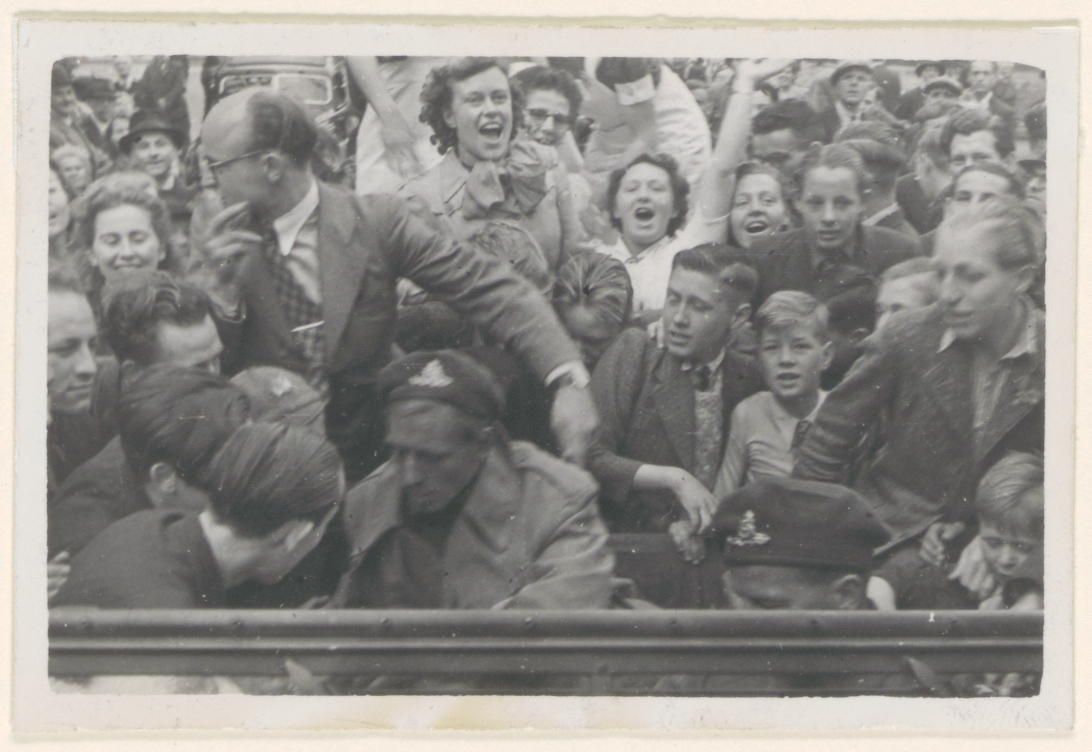 Uitdeling van Zweedse margarine en Zweeds wittebrood door de Binnenlandse Strijdkrachten.