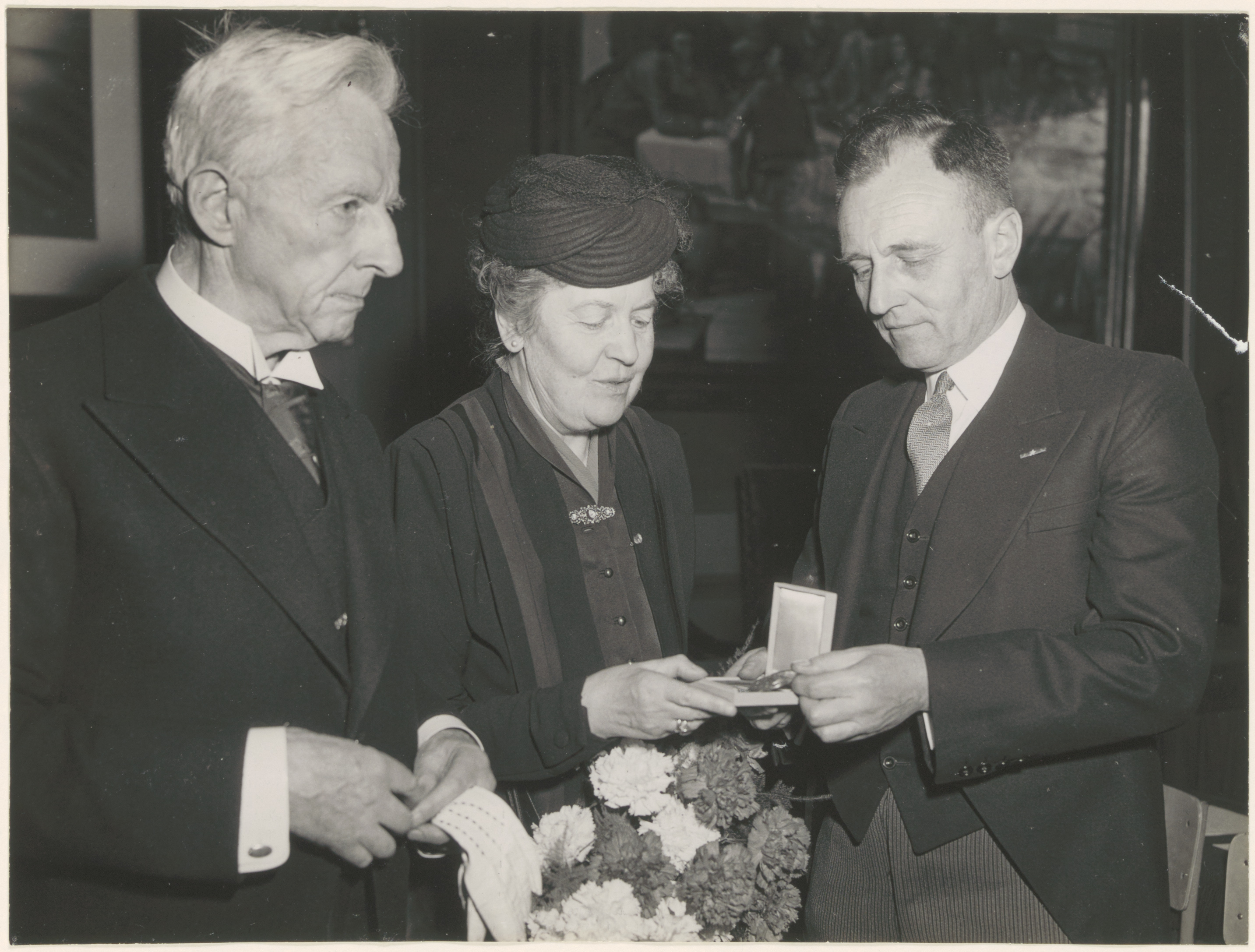 Huldiging op het stadhuis van mevrouw A. van Rhijn - Naeff (Top Naeff) als ereburger …