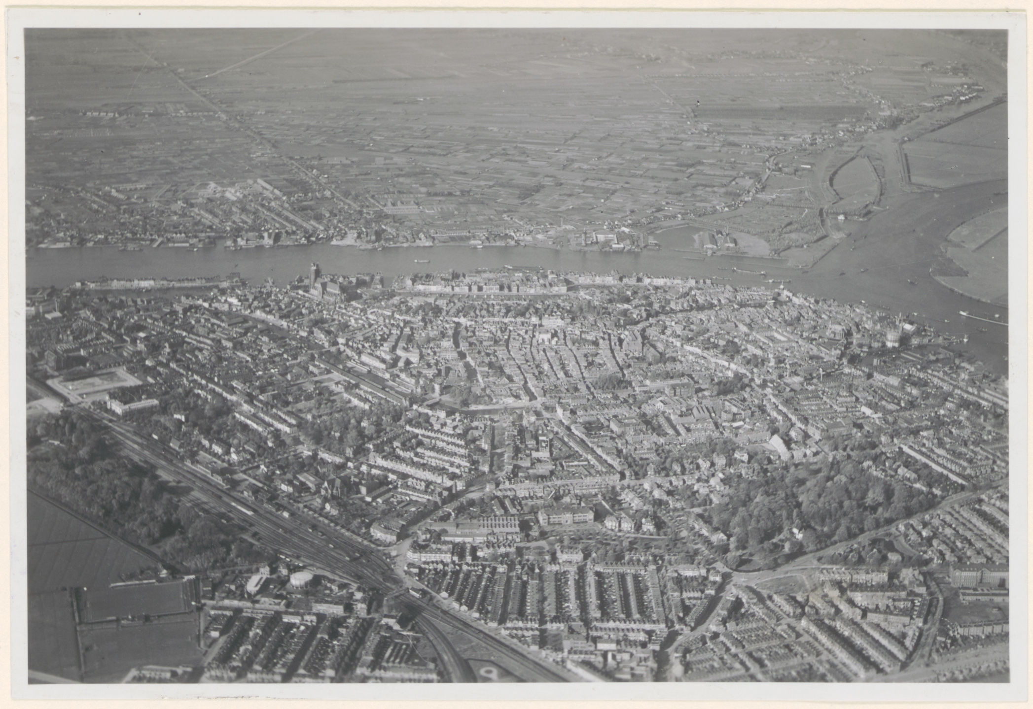 - Luchtfoto van Dordrecht in noordwestelijke richting.