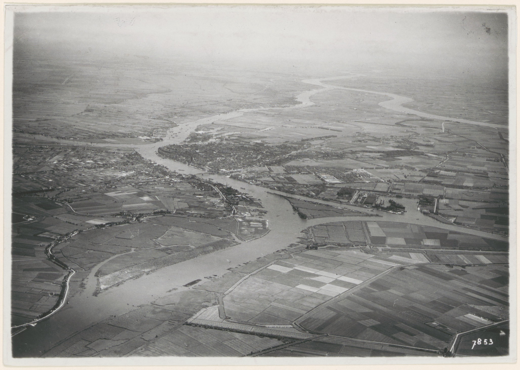 - Luchtfoto van Dordrecht en omgeving, gezien naar het oosten.