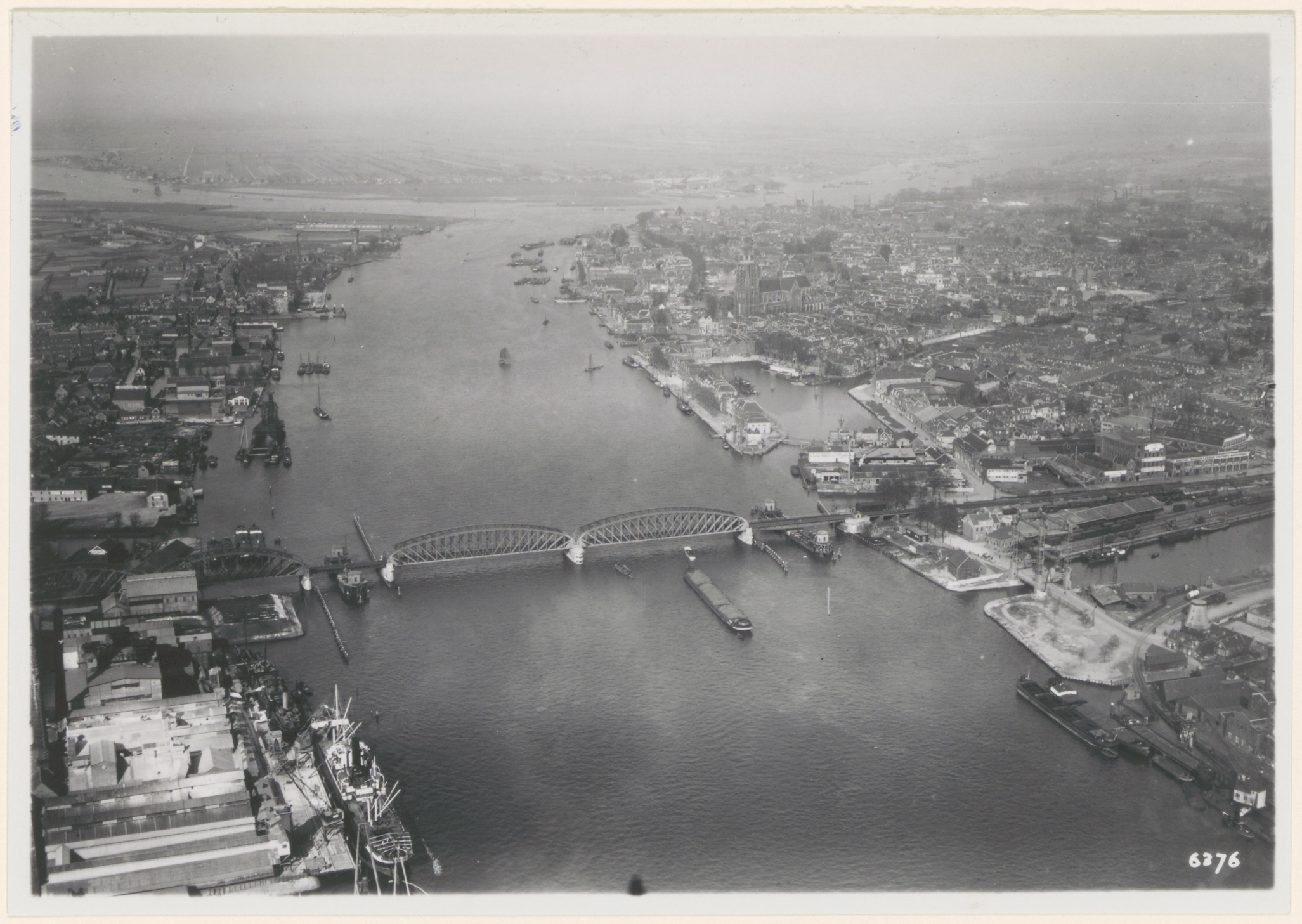 - Luchtfoto in oostelijke richting van Zwijndrecht en Dordrecht (rechts).