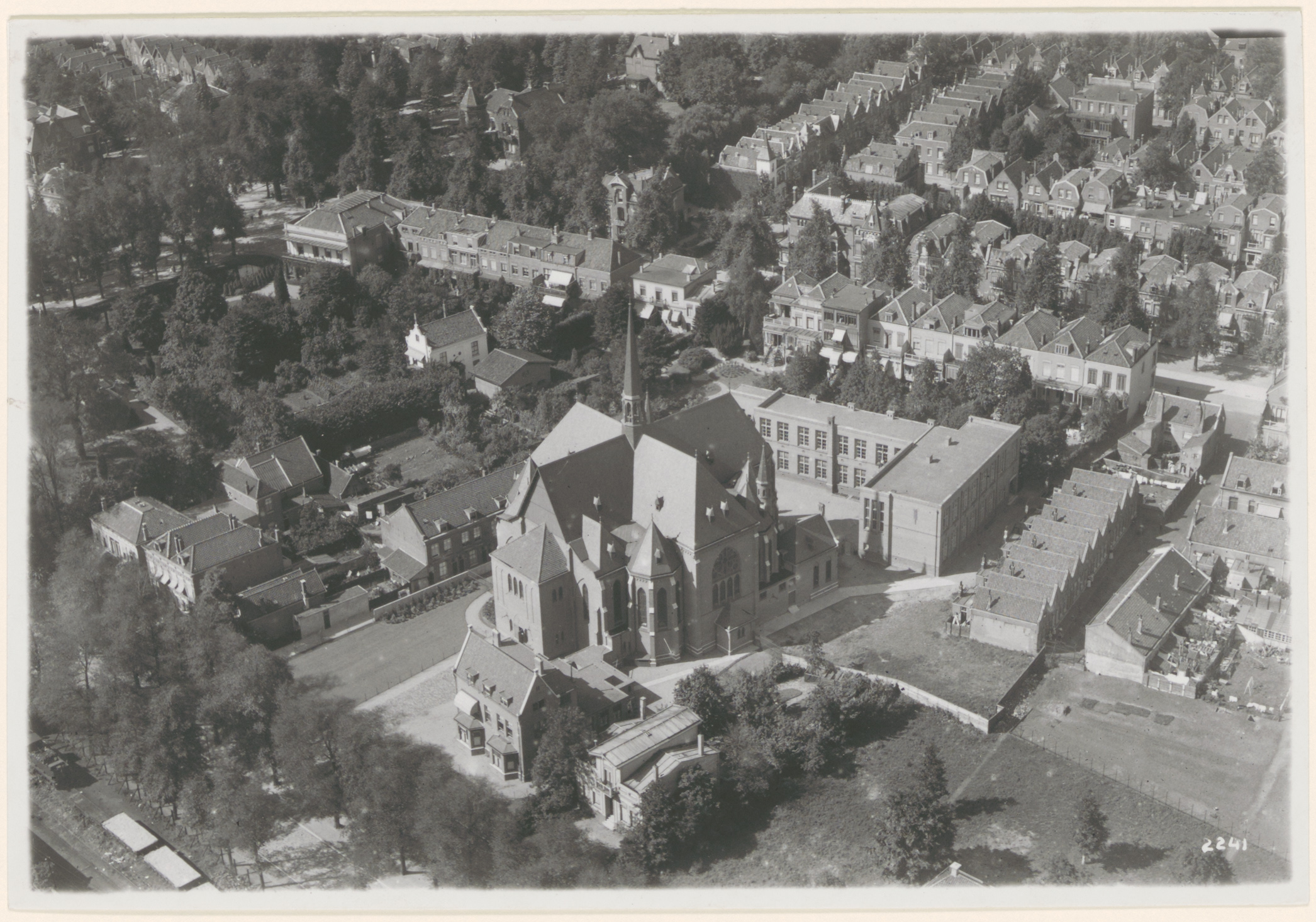 Luchtfoto van de Antoniuskerk aan de Burgemeester de Raadtsingel. Erachter de Sint …