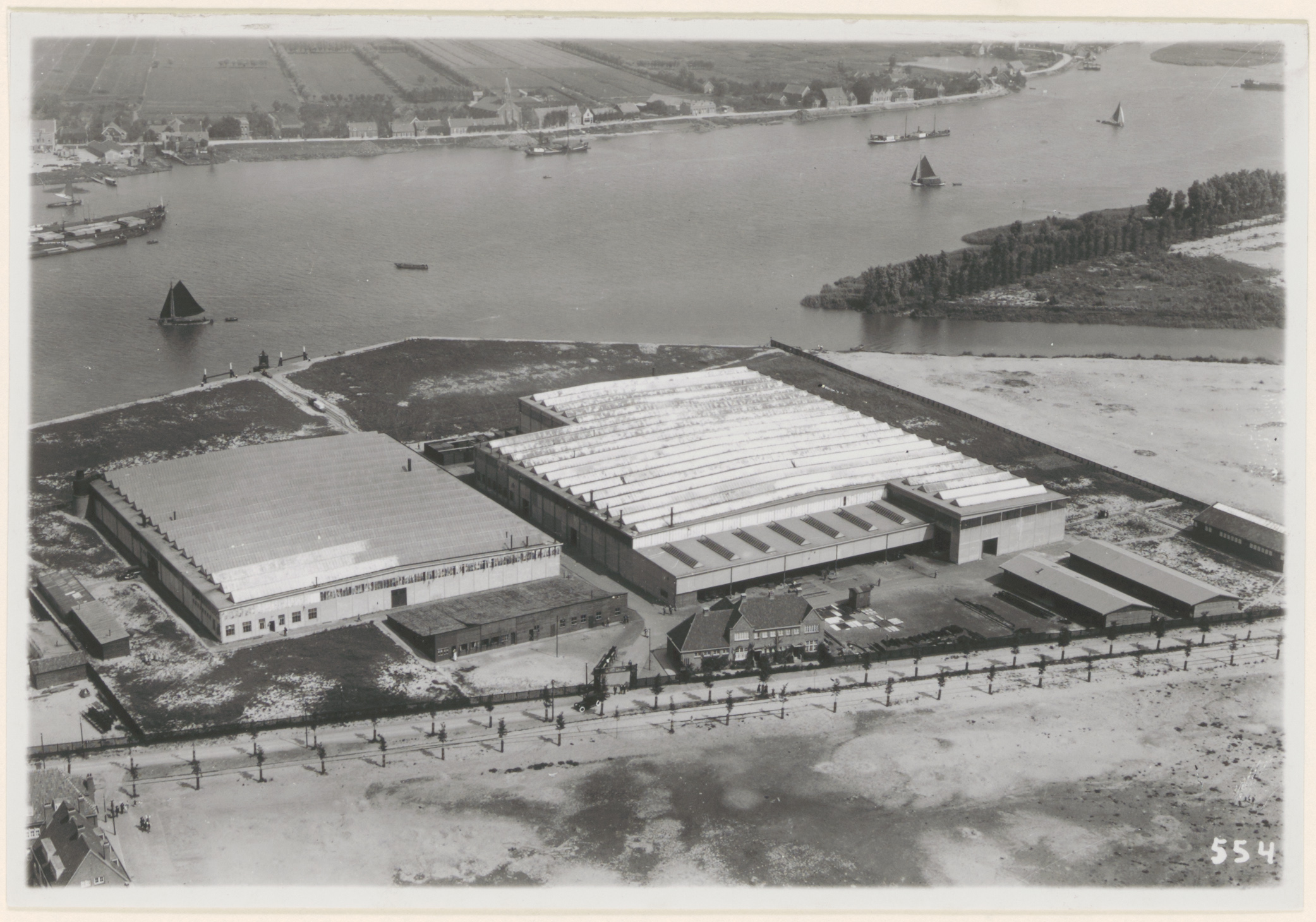 - Luchtfoto van Lips brandkasten- en slotenfabrieken aan de Merwedestraat.