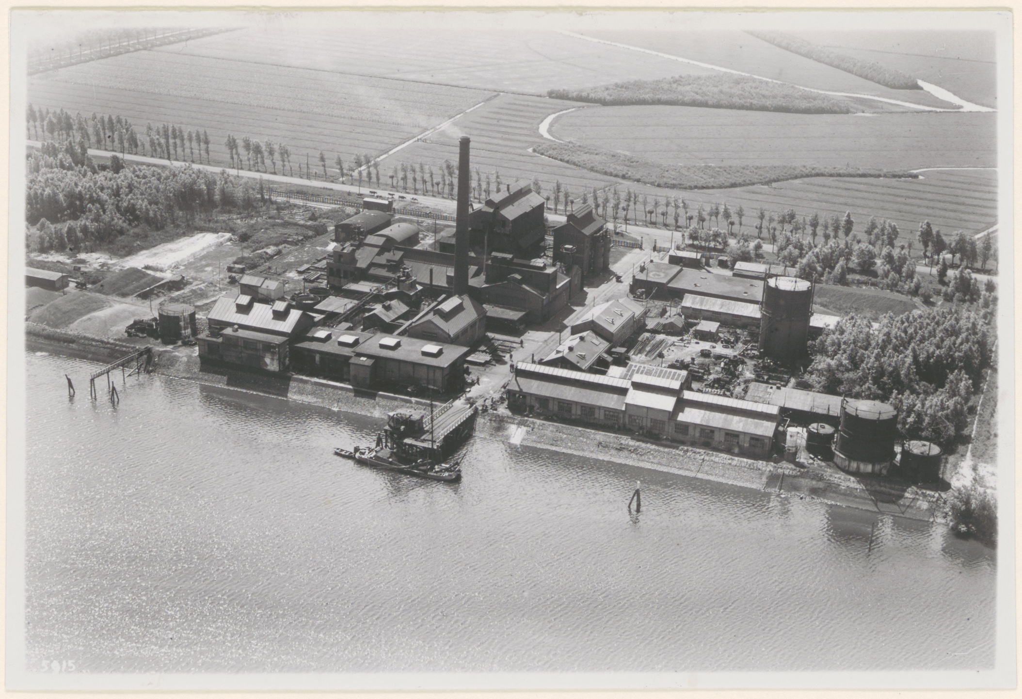 - Luchtfoto van de Zeehaven met de stikstoffabriek aan de Kilkade.