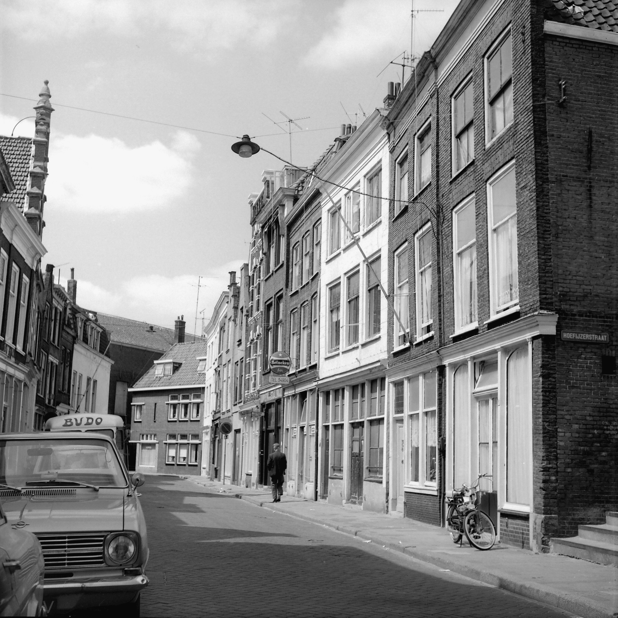 - auto's bromfietsen / brommers cafés lantaarns / straatverlichting televisieantennes voetgangers