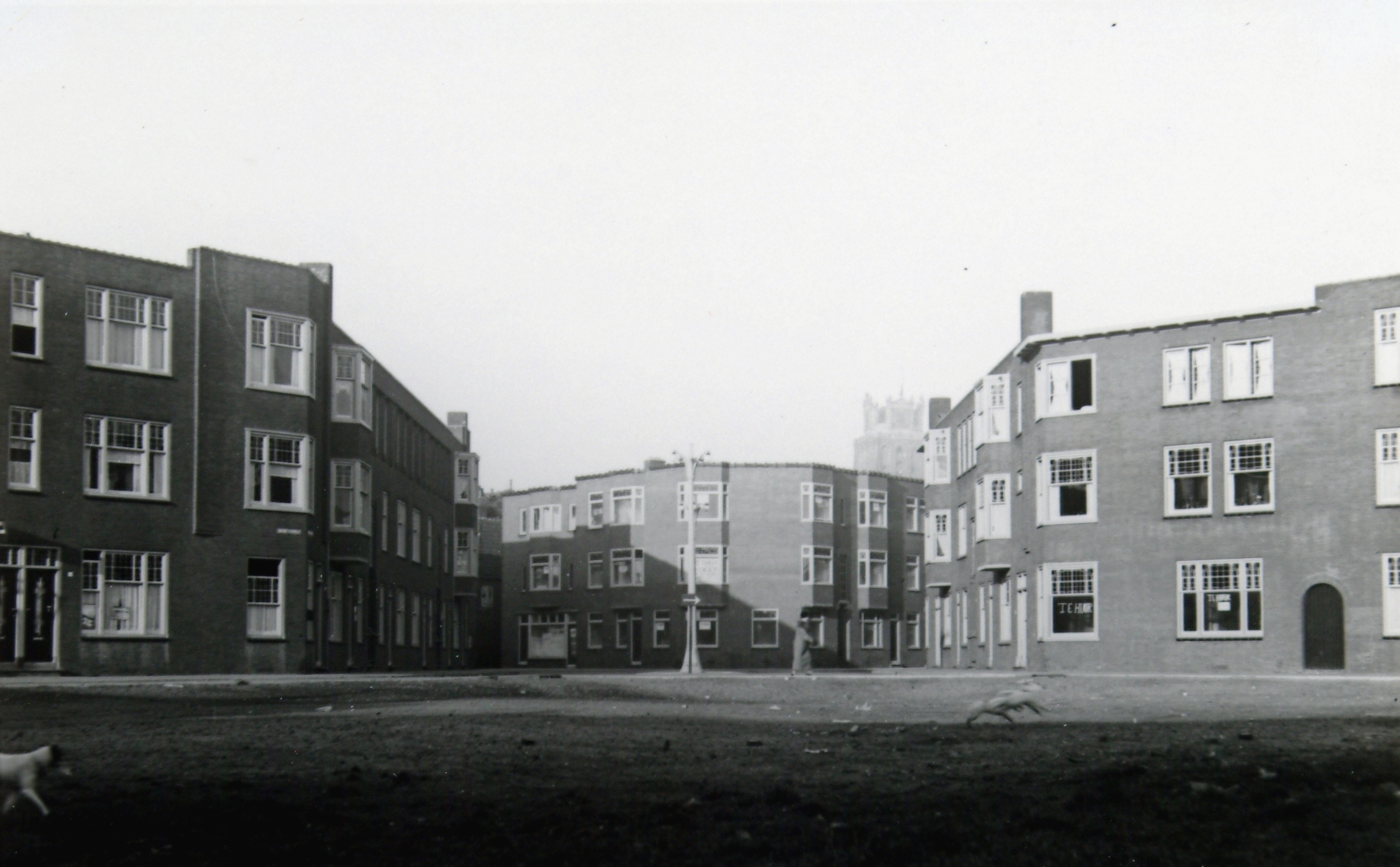 - De bebouwing aan de noordzijde van het nog onbestrate Bethlehemplein. Achter de lantarenpaal is links de toegang tot de Elfhuizen en rechts tot de Lombardstraat te zien.