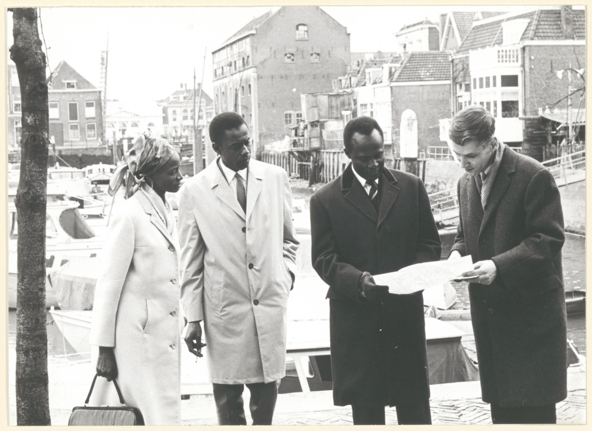 - Rondleiding van de Nigeriaanse ambassadeur Coubia Djibo en echtgenote door Mr. A.F.M. Delemarre op de Korte Engelenburgerkade..
