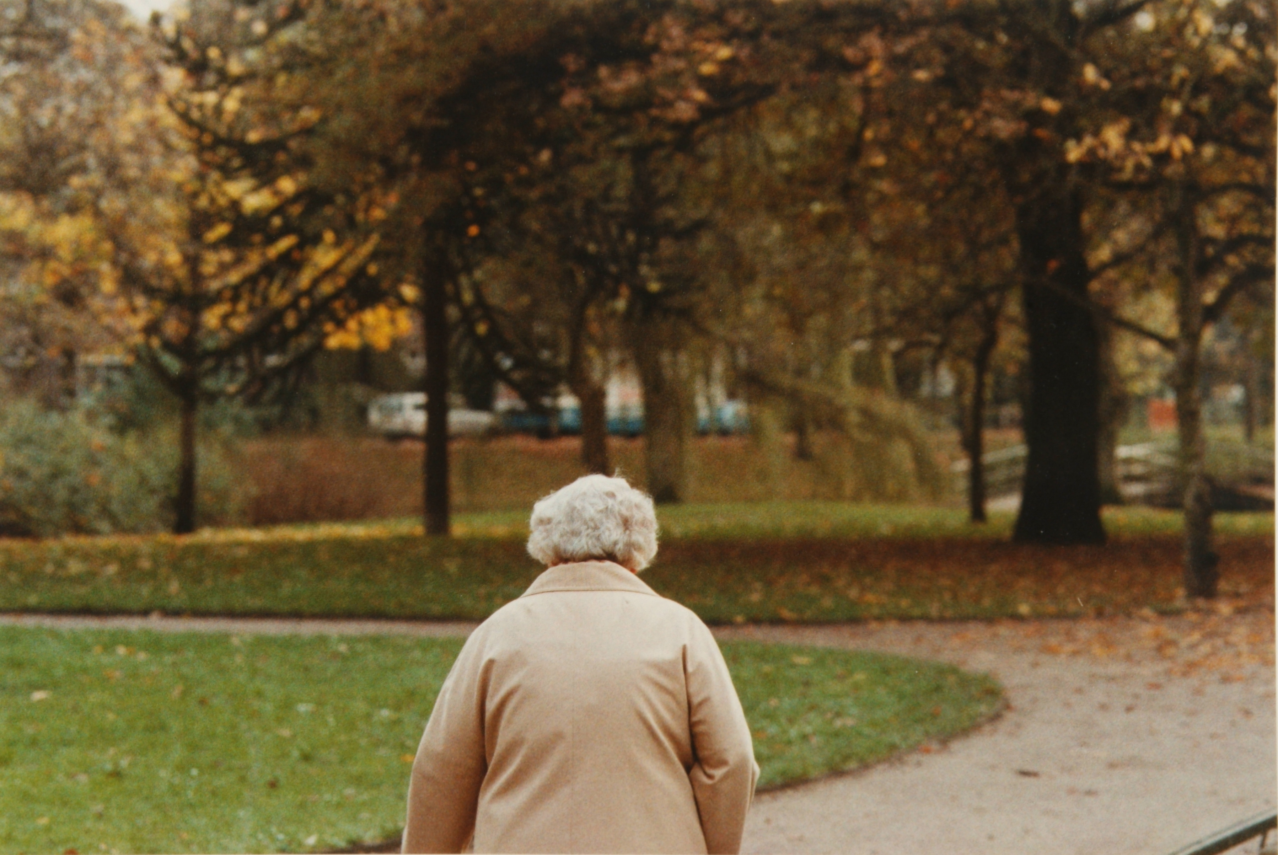 Oudere dame in Park Merwestein gezien naar de Groenedijk.
