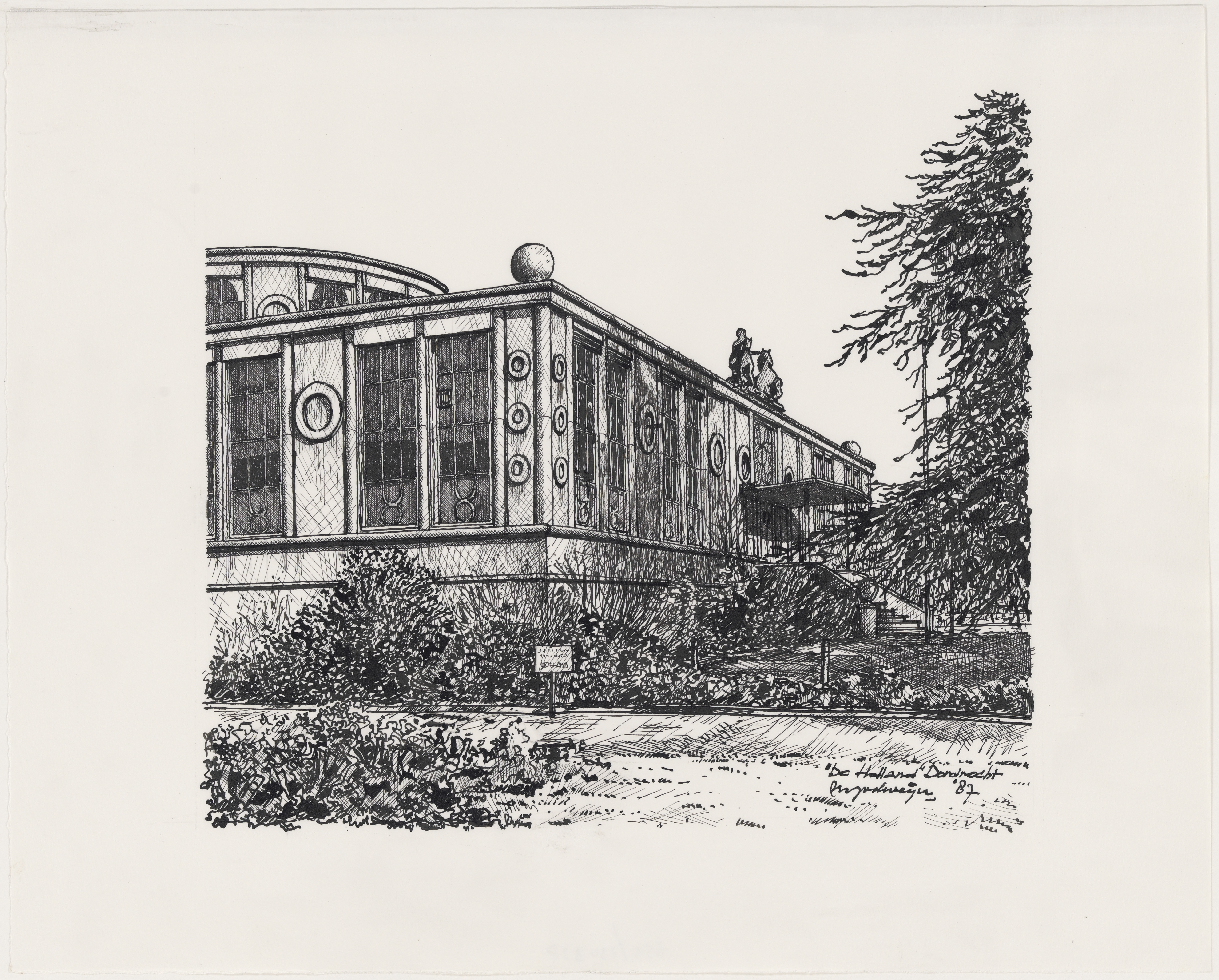 Het exterieur van het kantoor van verzekeringsmaatschappij De Holland, gezien vanaf de …