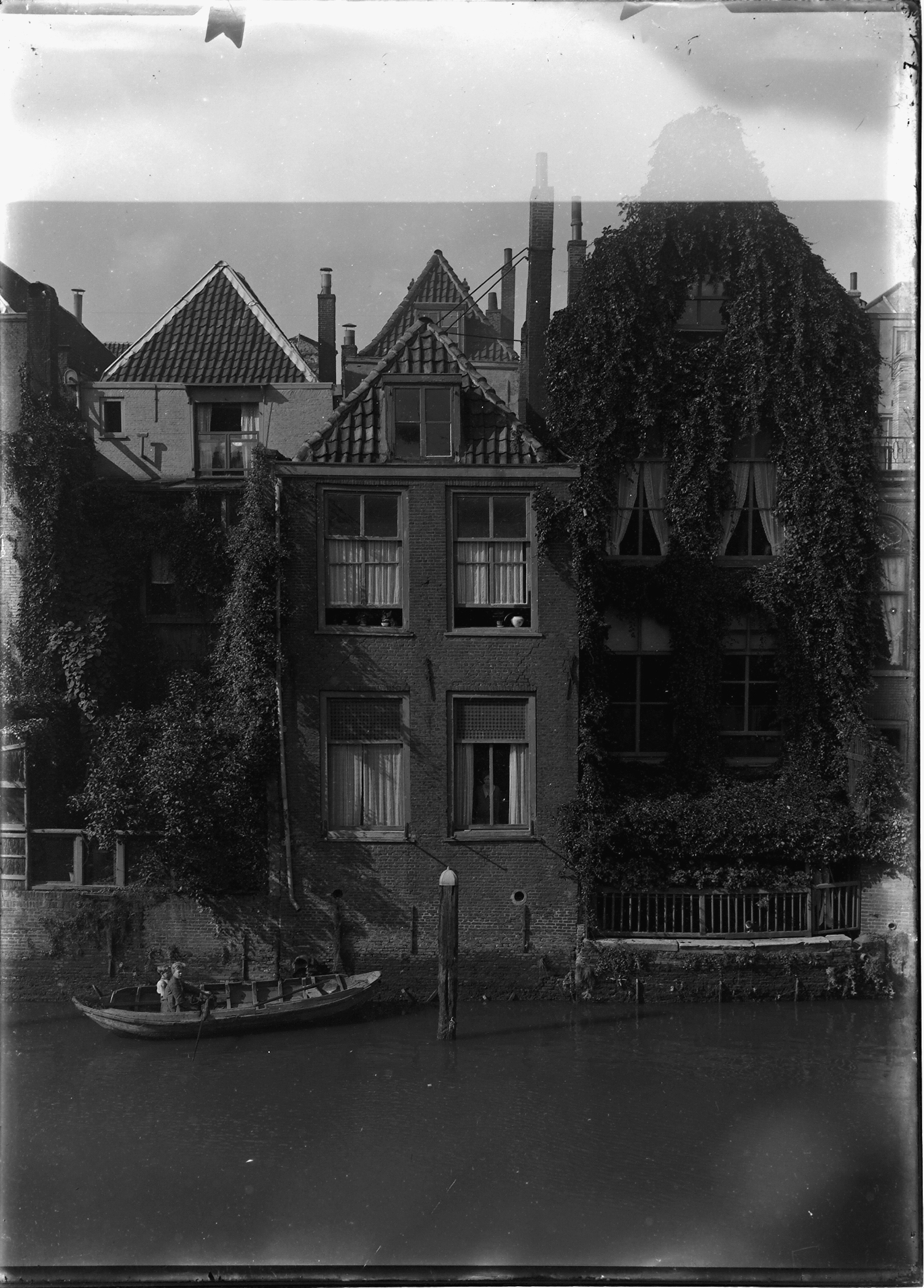 De Wijnhaven tussen Botermarkt en Nieuwbrug met achterkant van huizen in de Wijnstraat. …
