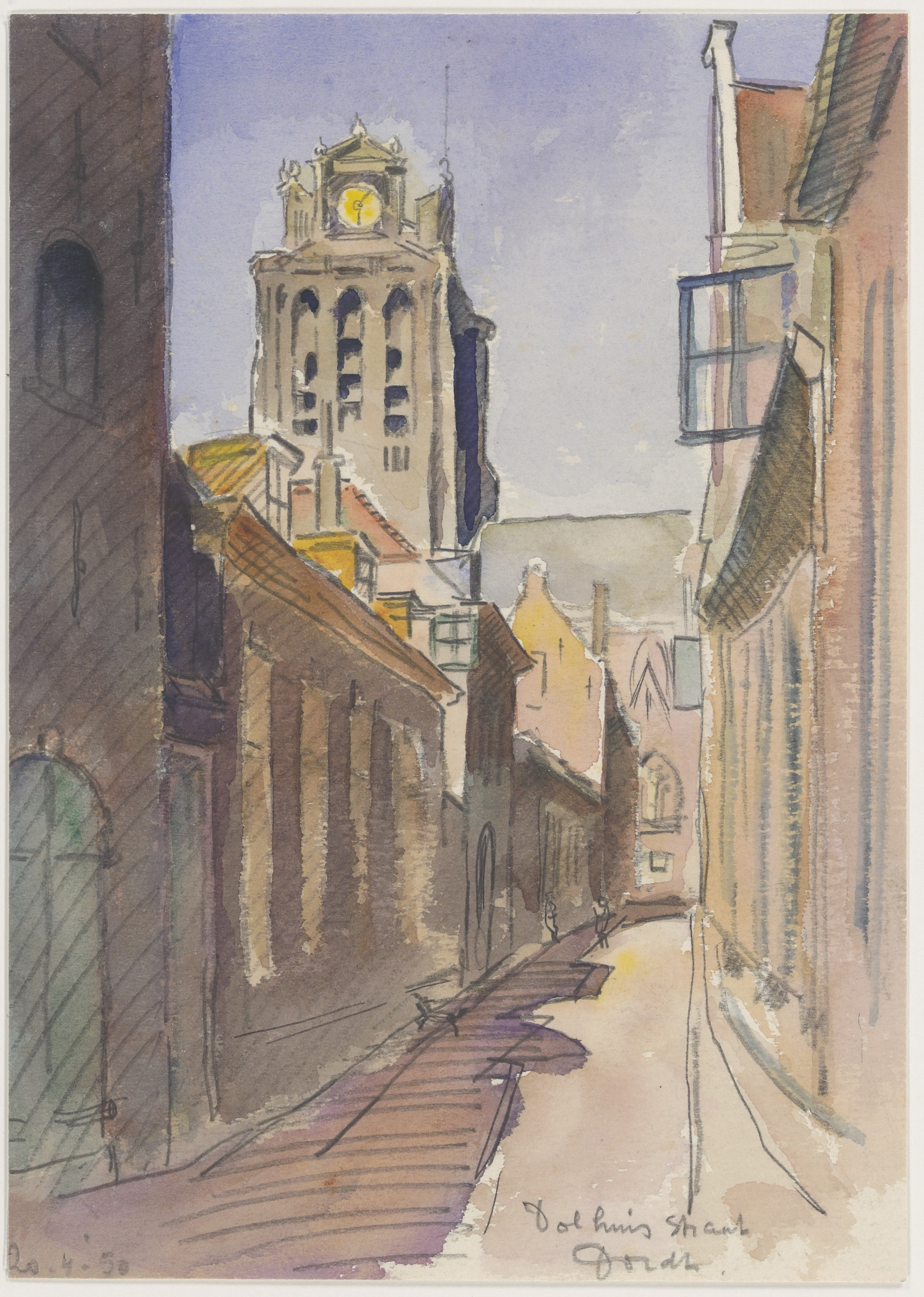 - De Dolhuisstraat, gezien naar de Grote Kerk.