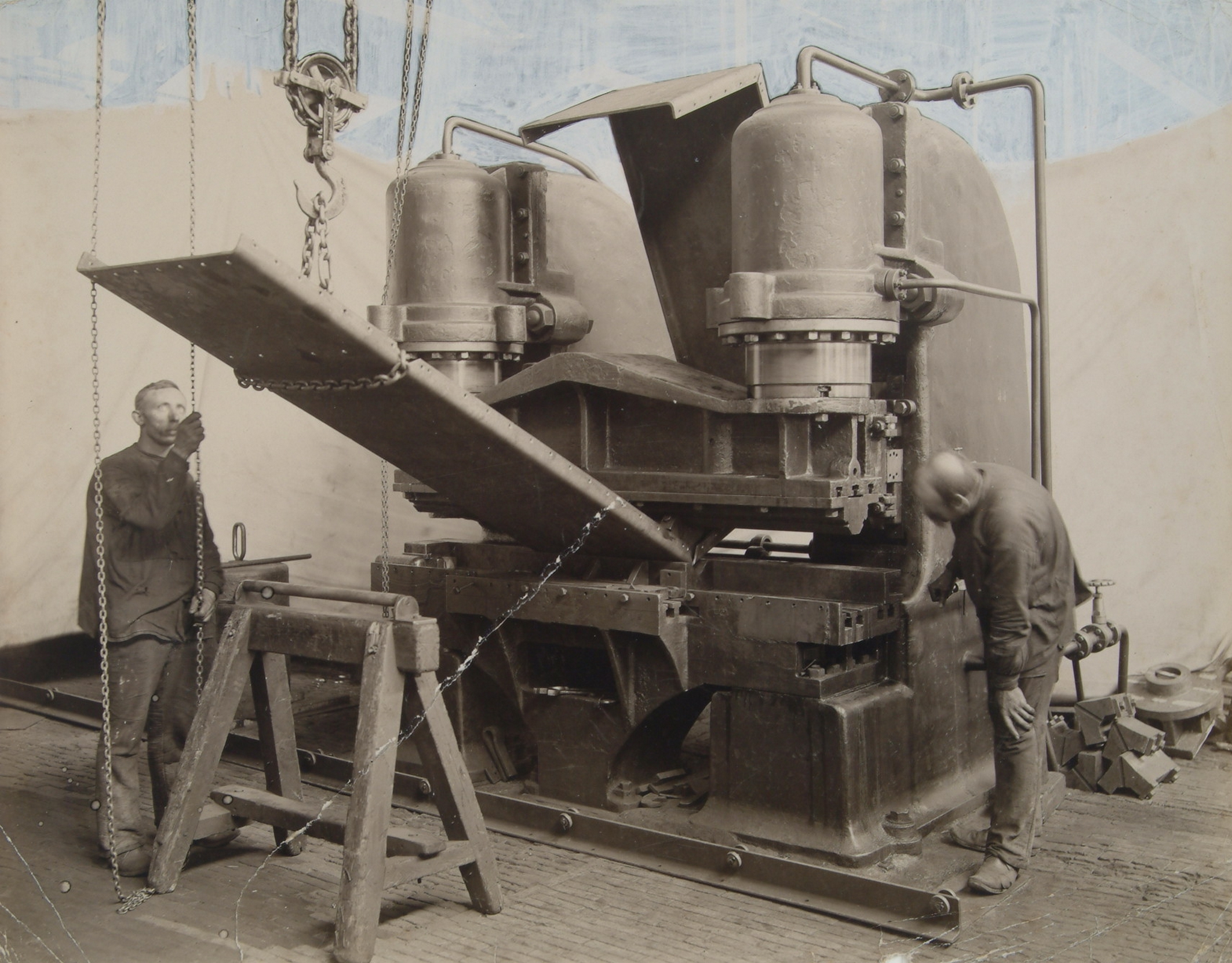 - De eerste zware hydraulische kantpers voor het koud 12-voudig buigen van brandkastrompen in de Lipsfabriek aan de Spuiweg