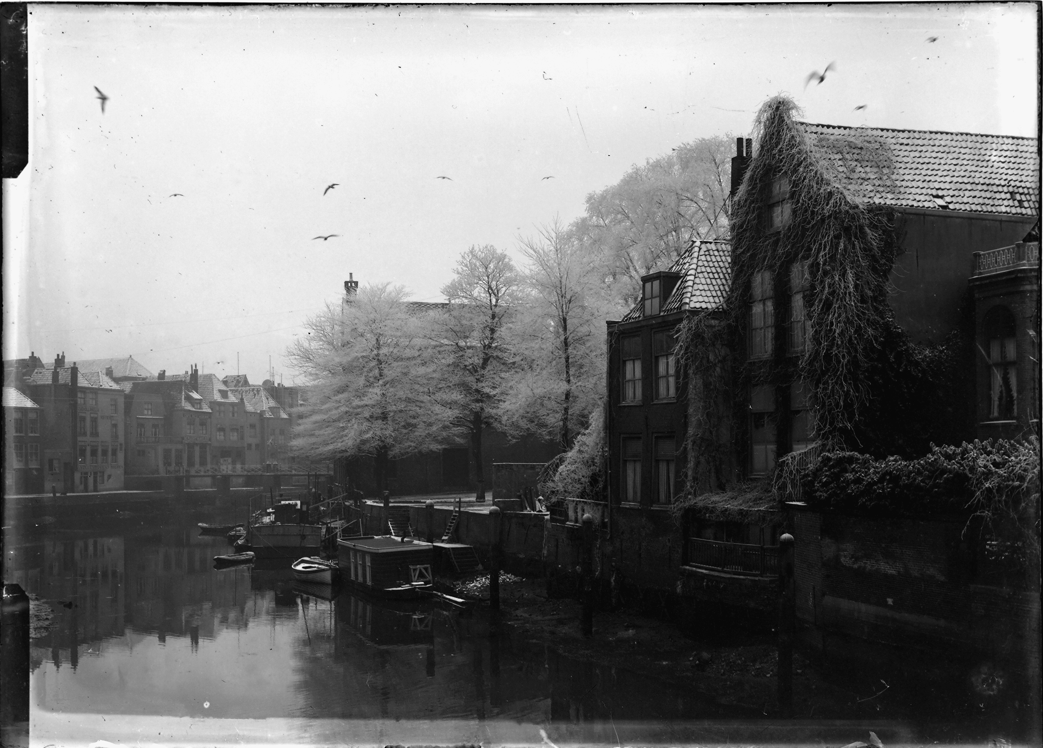 - bibliotheken bruggen havens roeiboten sneeuw woonboten