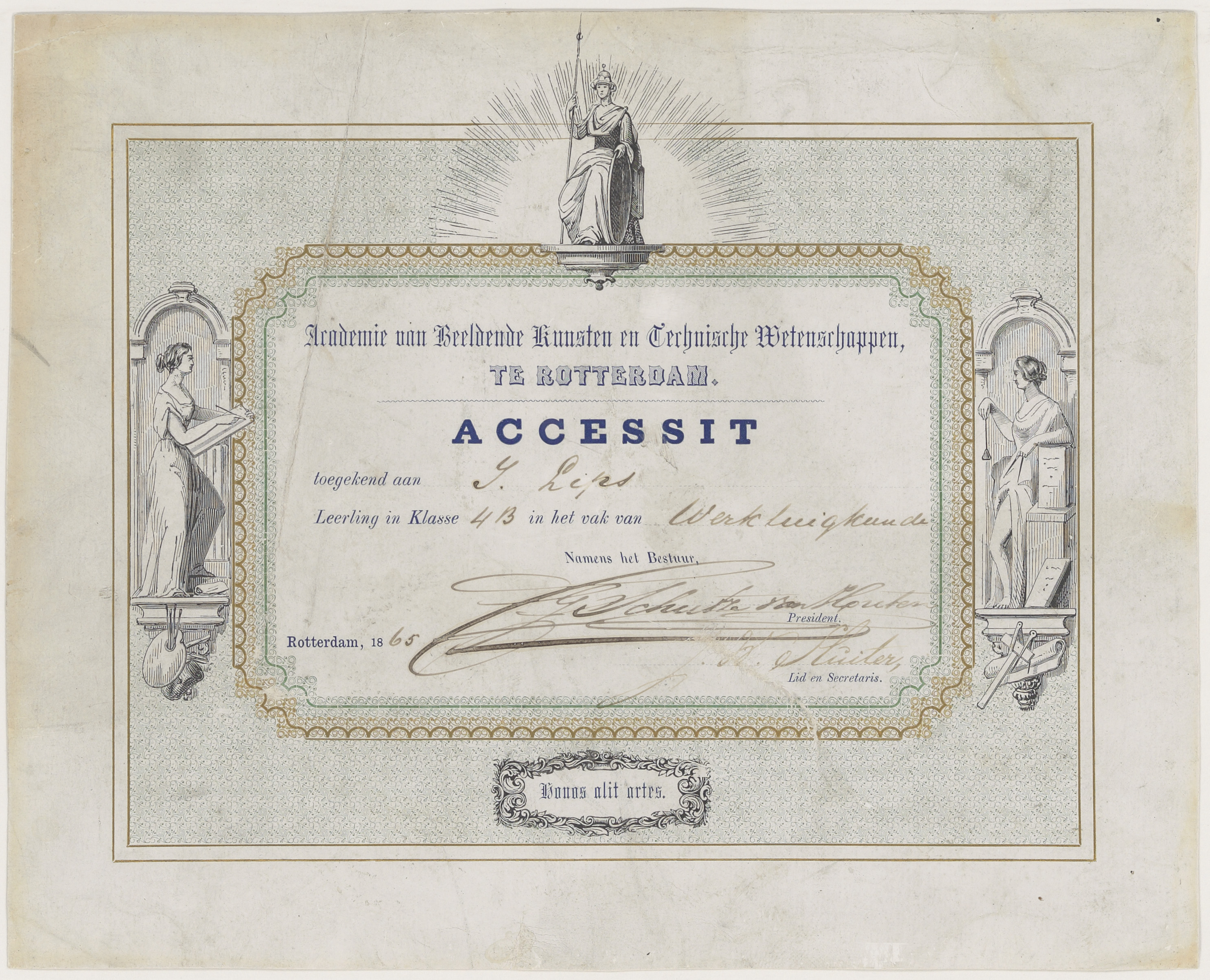 Het diploma van de Academie van Beeldende Kunsten en Technische Wetenschappen te …