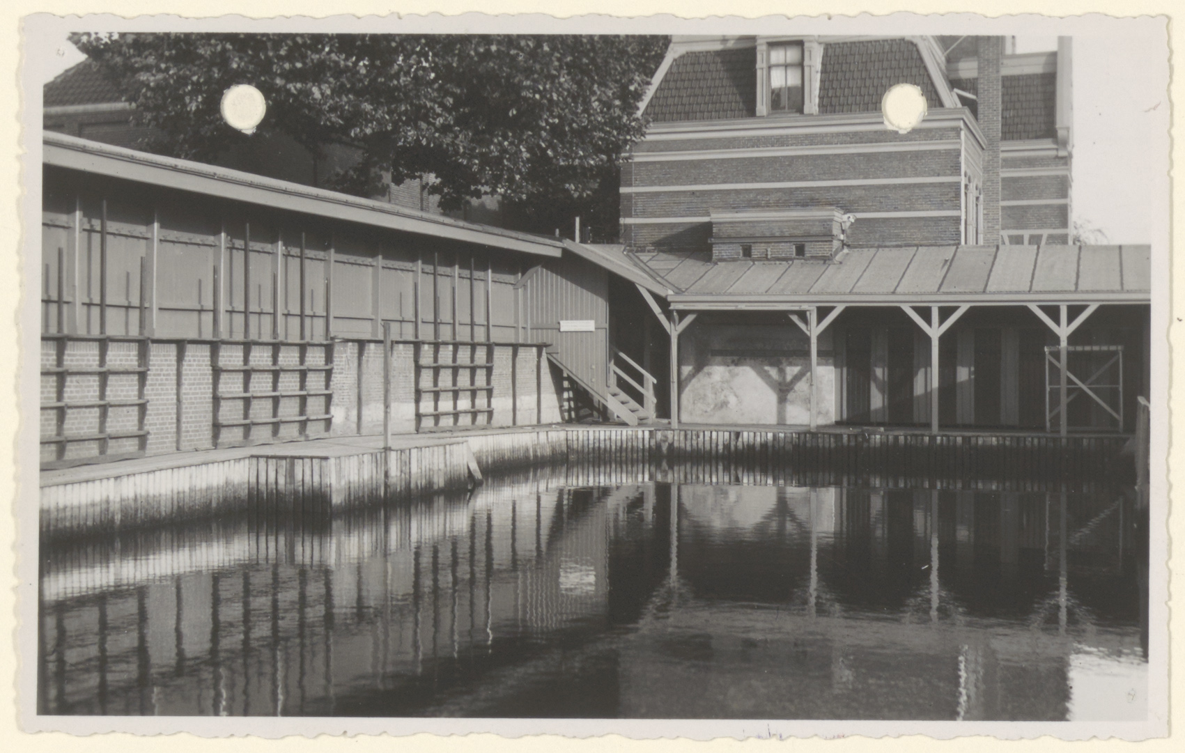 De Gemeente Zwemschool in de Spuihaven. Erachter staat het Volksbadhuis aan de Vest.