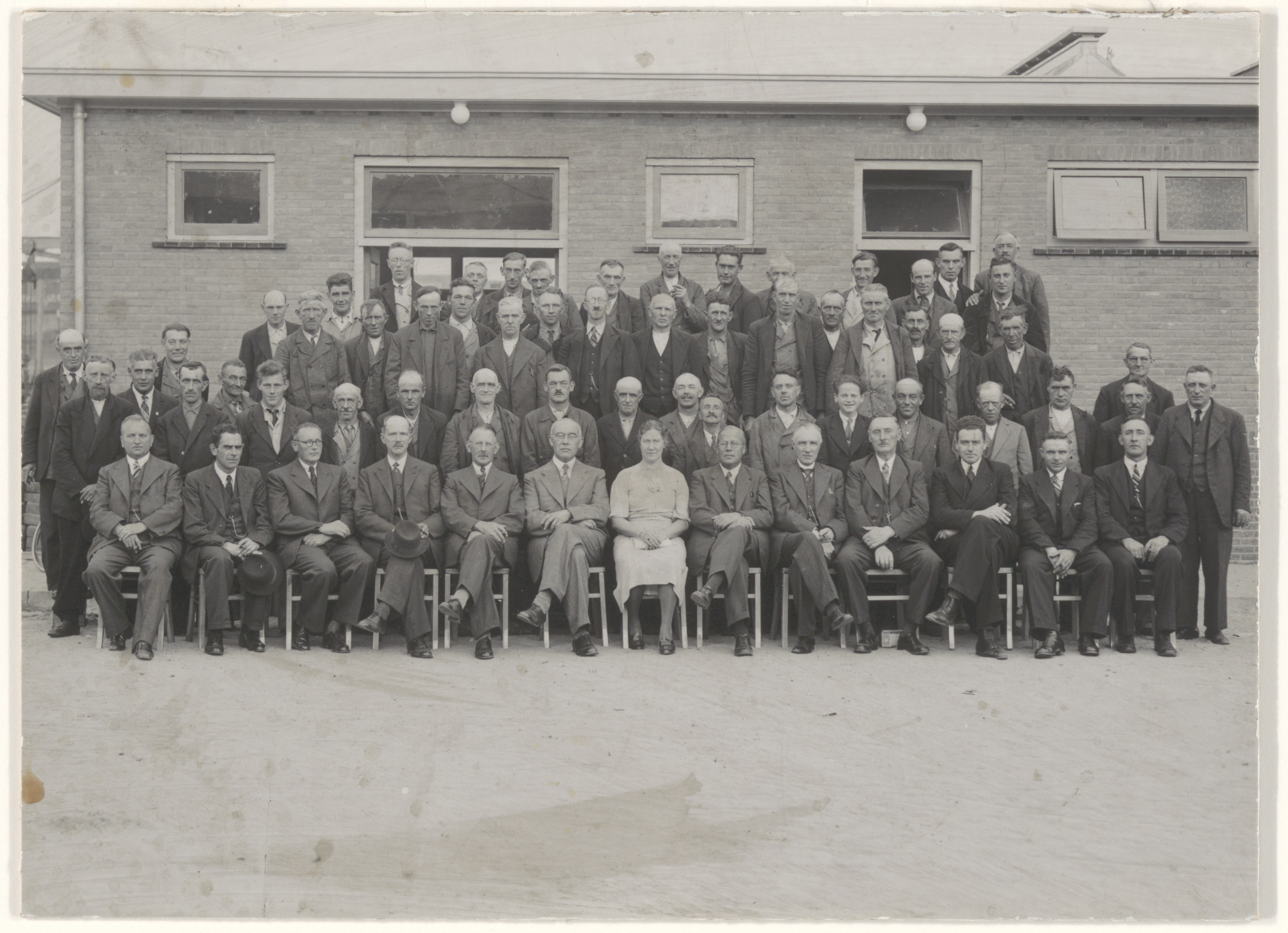 Personeel en directie van de Gemeente Reinigingsdienst. Zittend in het midden …