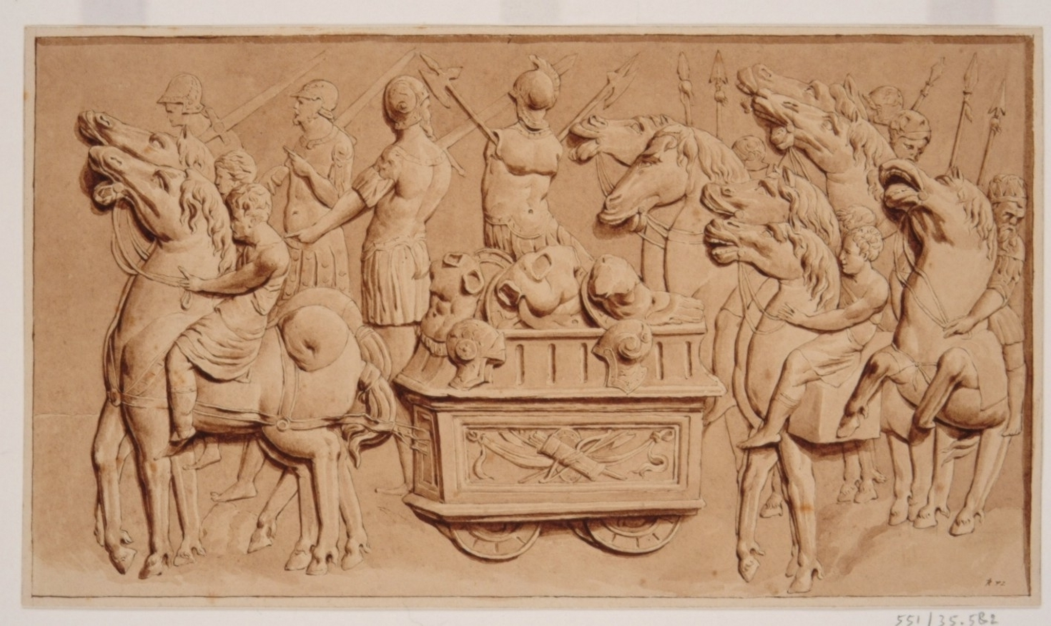 - Grote Kerk - de Koorbanken, Noord- of Evangeliezijde: 16,5 paneel in de achterwand van de banken met een voorstelling van een Romeinse zegetocht. Paneel 8: een wagen met buitgemaakte krijgswapenen, omringd en gevolgd door gewapenden te voet en te paard