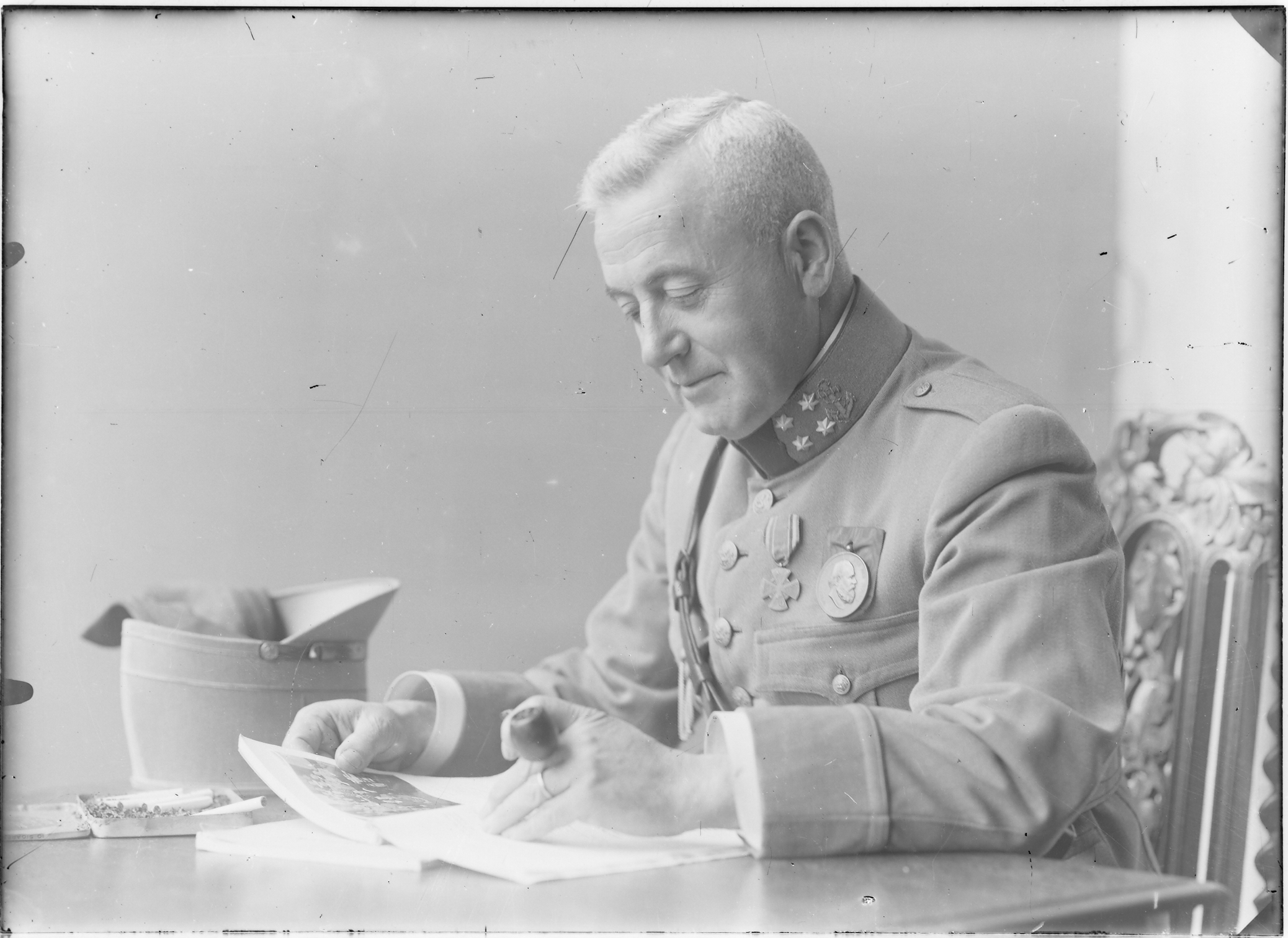 - Kolonel van Gestel aan een bureau in de Benthienkazerne aan de Buiten Walevest