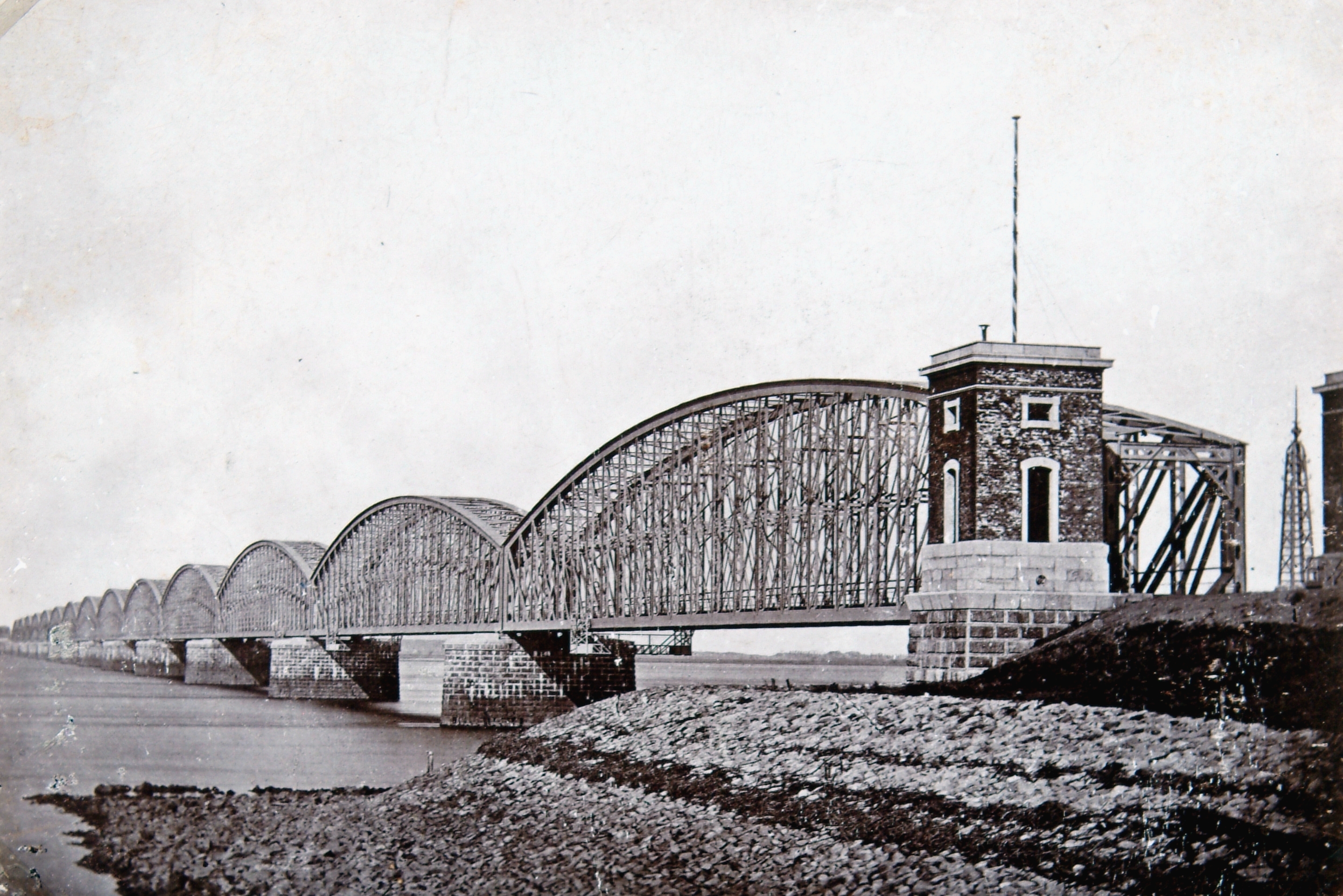 De spoorbrug over het Hollandsch Diep vanaf de Dordtse kant richting Brabant gezien.