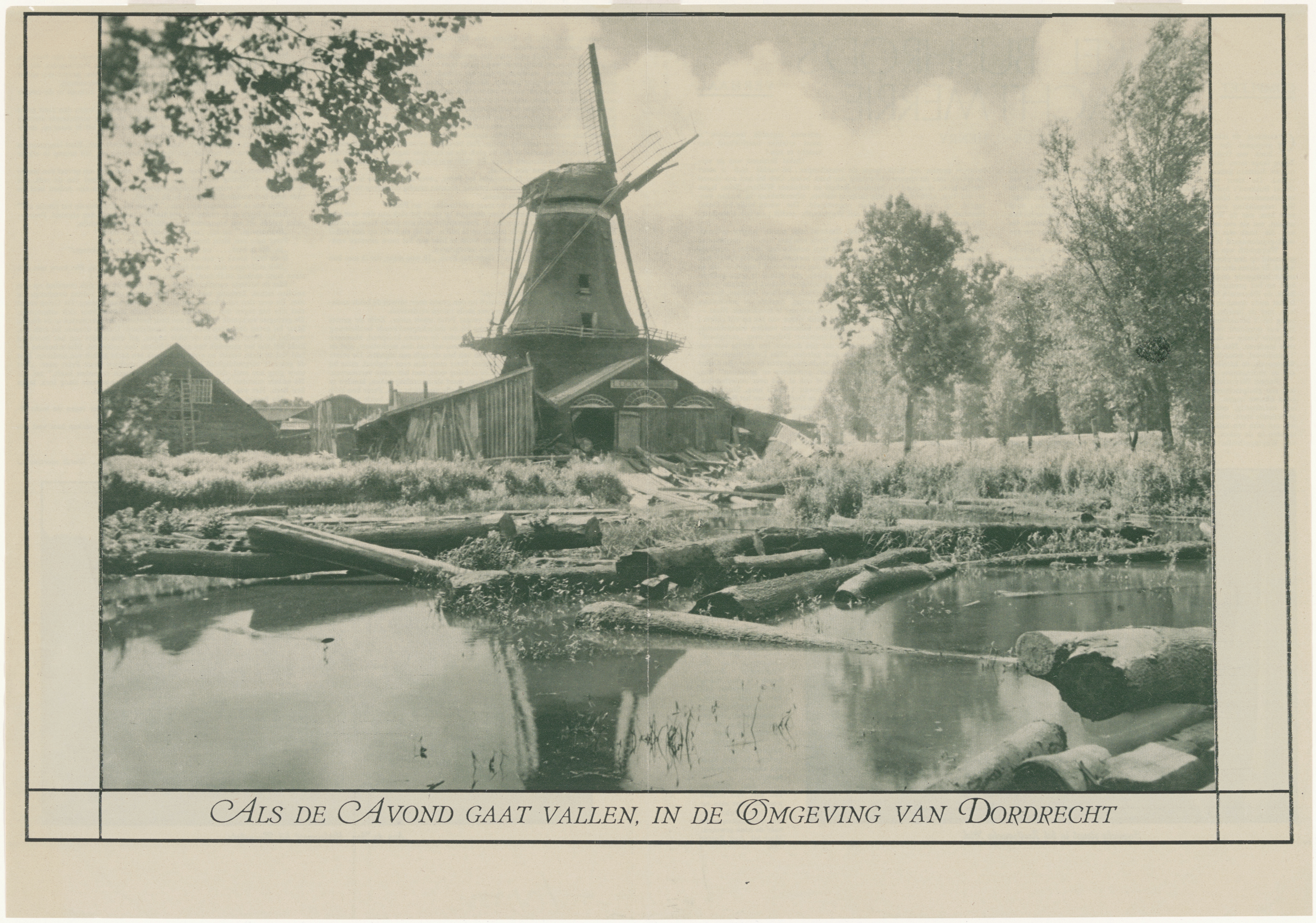 - Gezicht op de houtzaagmolen "De Nachtegaal" aan de noordzijde van de Noordendijk op de oostelijke hoek van de Oranjelaan.