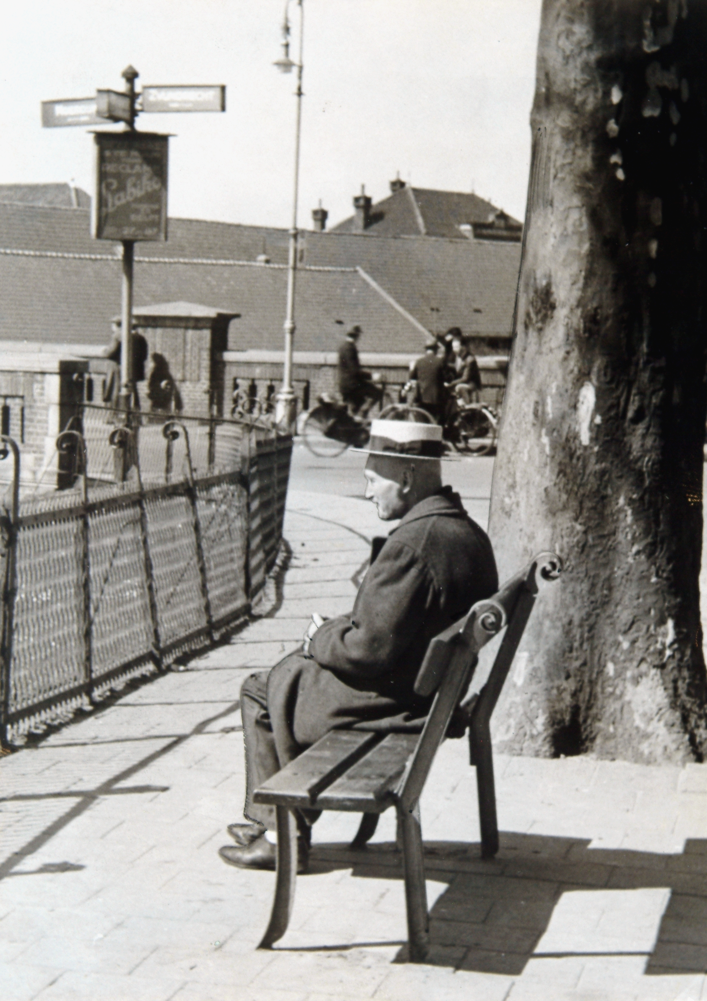 Hoek Vest/Johan de Wittbrug. De daken vlak achter de brugleuning zijn van de …
