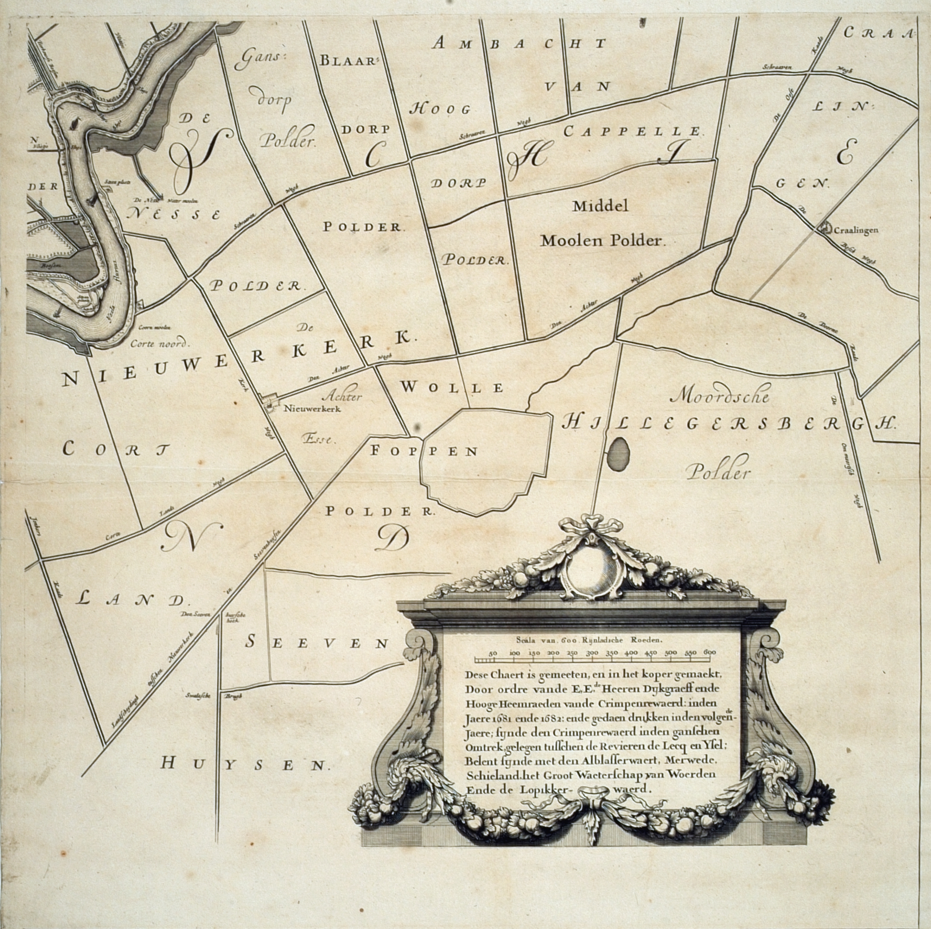 - Blad 6 van de kaart in zes bladen van het hoogheemraadschap van de Krimpenerwaard met de daarin gelegen polders, ambachten en hoge heerlijkheden, vervaardigd in opdracht van de dijkgraaf en hoogheemraden in 1681 en 1682.