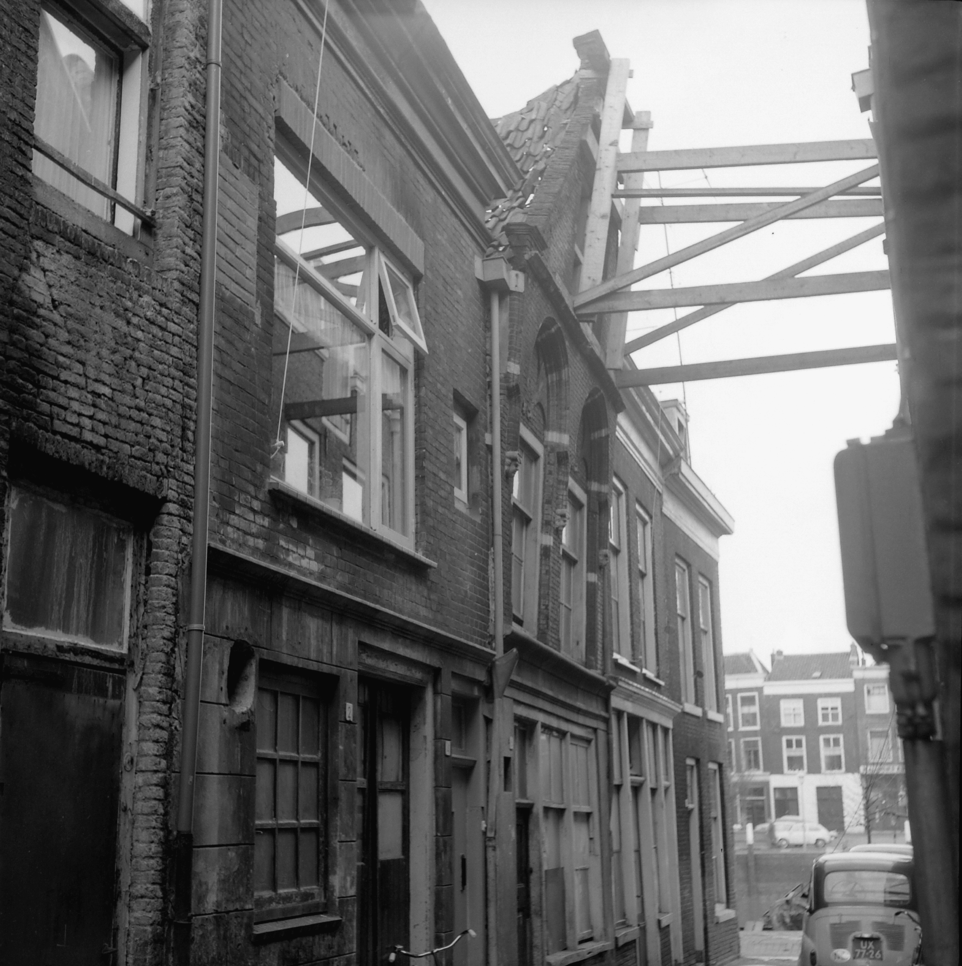 - Gevelondersteuning in de Kerksteiger. Op de achtergrond zie je de Mattenkade
