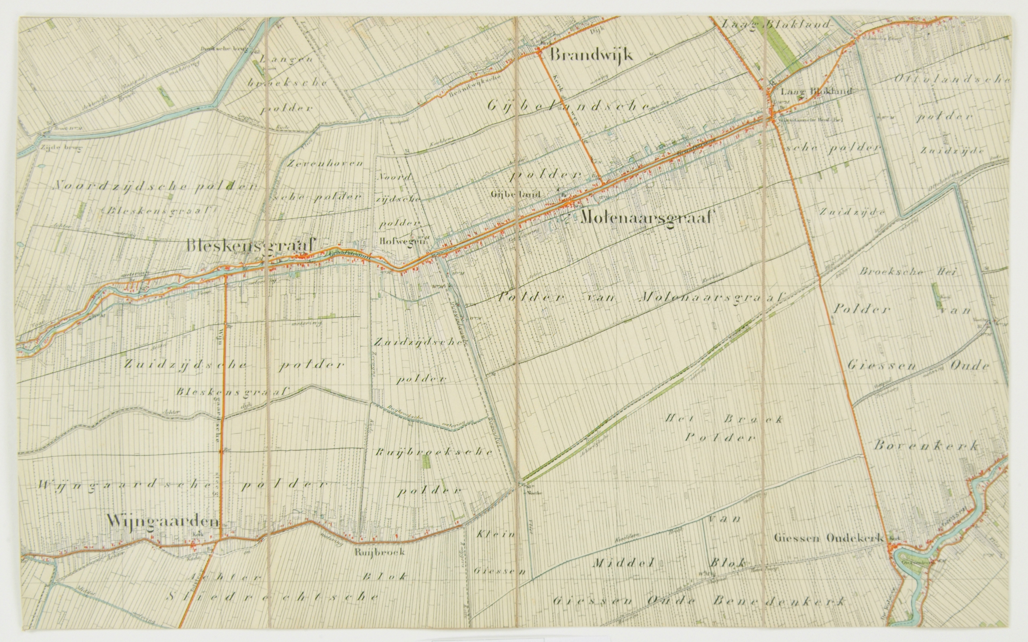 - Topografische kaart Molenaarsgraaf, linksboven Laag Blokland, rechtsonder Giessen-Oudekerk, linksonder Wijngaarden, linksboven Langenbroeksche Polder.