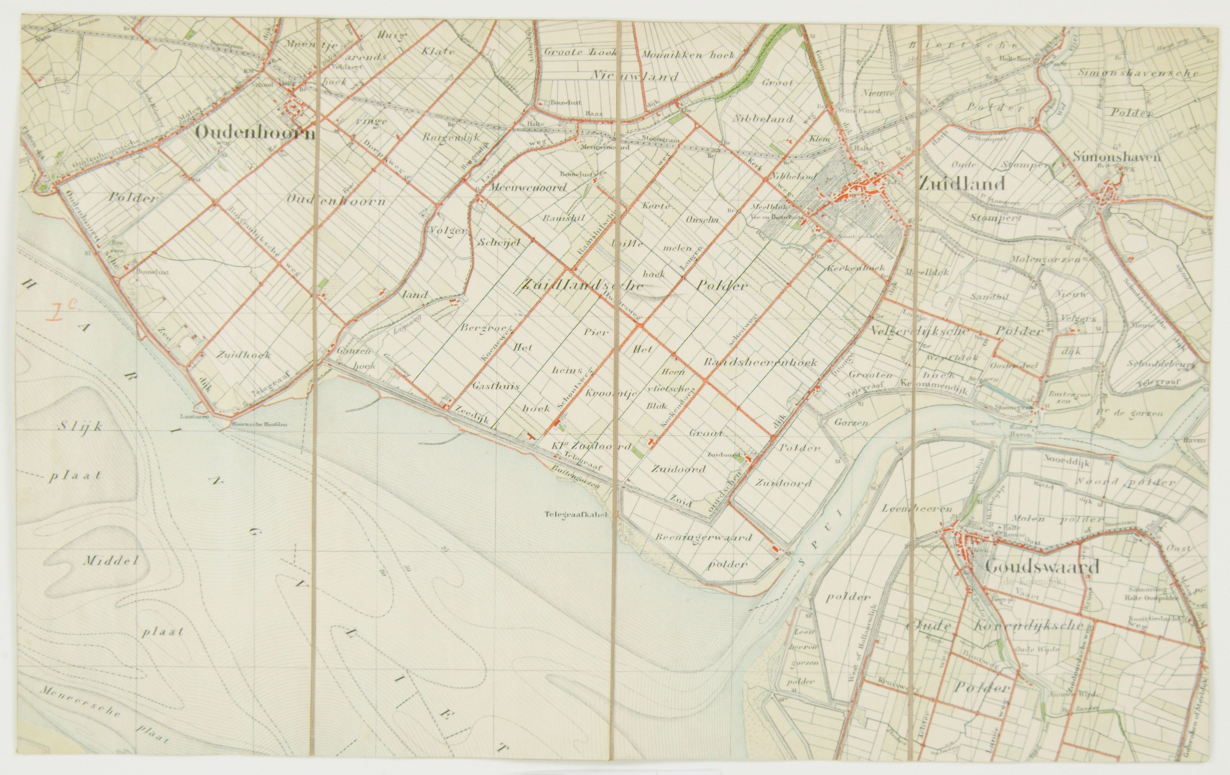 Topografische kaart Zuidland, rechtsboven Simonshaven, rechtsonder Goudswaard, linksonder Middelplaat, linksboven Oudenhoorn.