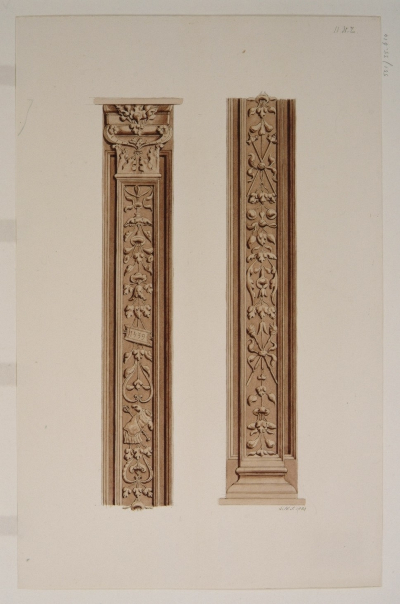 - Grote Kerk - de Koorbanken, Noord- of Evangeliezijde: vóórbanken noordzijde; gebeeldhouwde pilaar in de achterwand, met rijke versiering van bloemen, vruchten, muziekinstrumenten, krijgswapens enz.