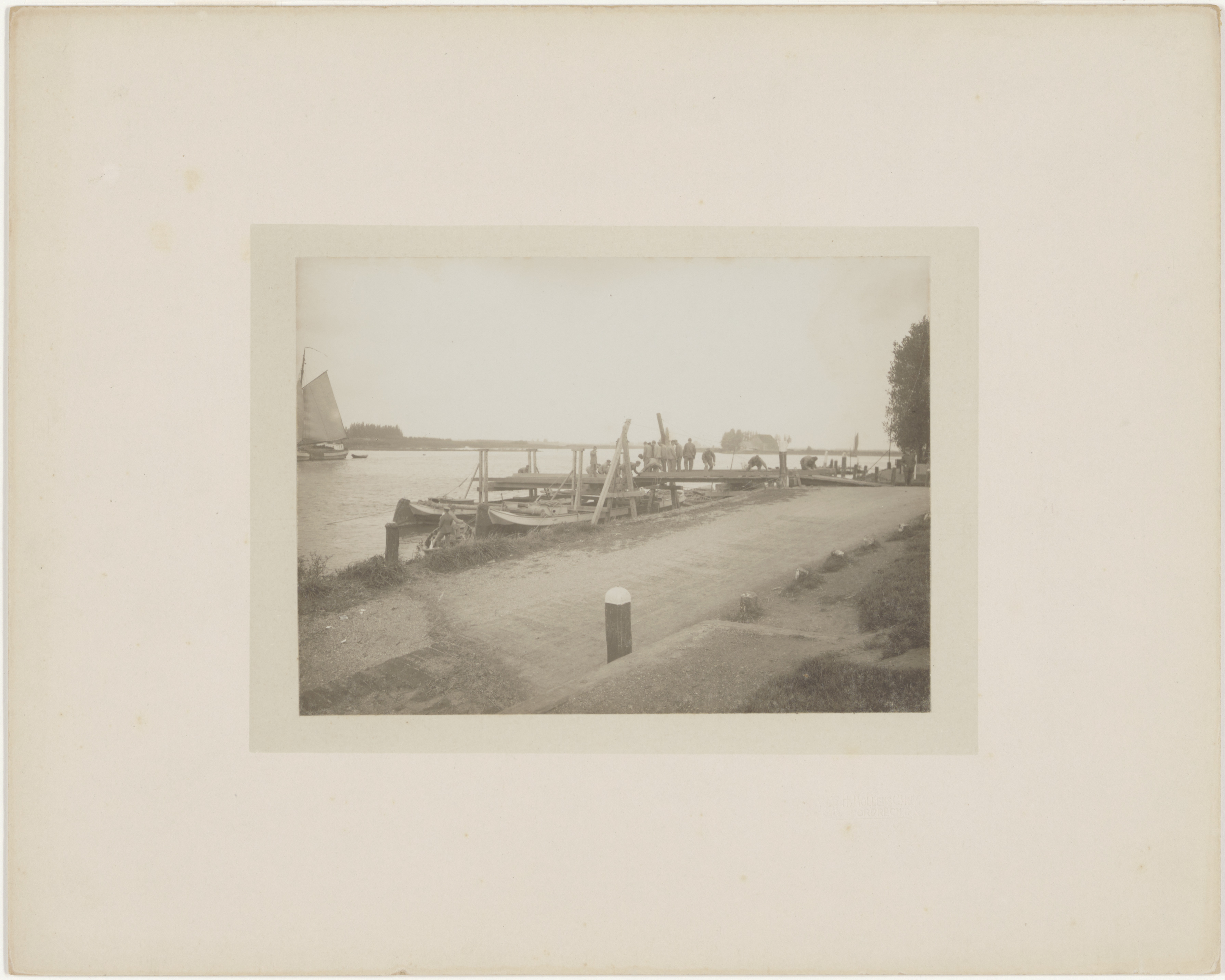 Oefening van pontonniers op de Dordtsche Kil bij de veersteiger aan de Wieldrechtse …