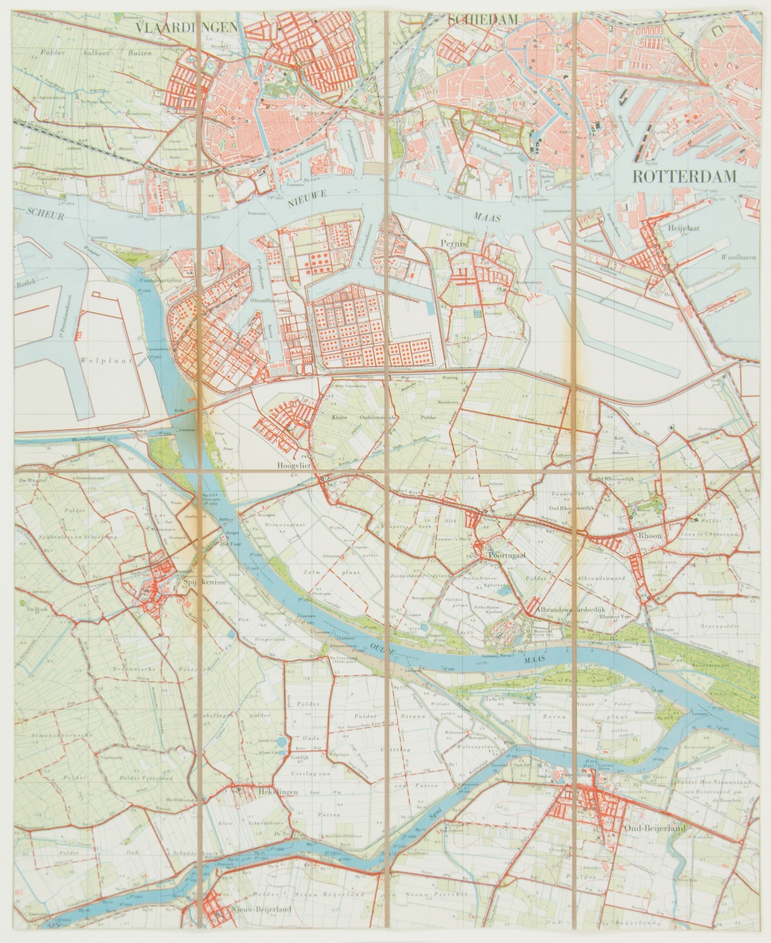 Topografische kaart Schiedam, rechtsboven Rotterdam, rechtsonder Oud-Beijerland, …