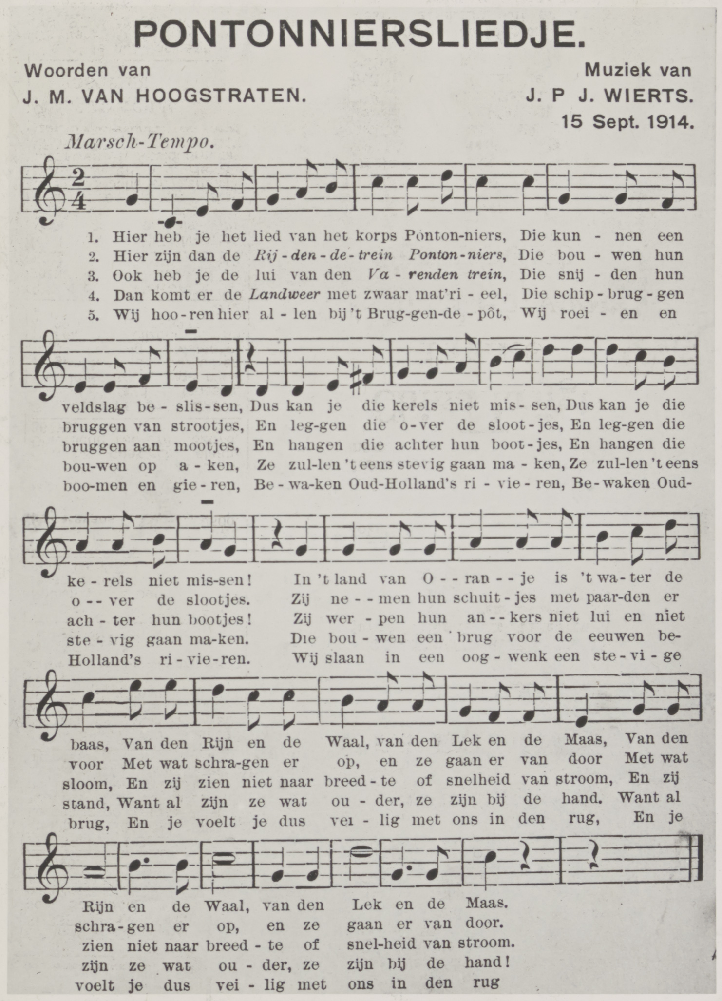 Pontonniersliedje. Tekst van J.M. van Hoogstraten, muziek van J.P.J. Wierts.