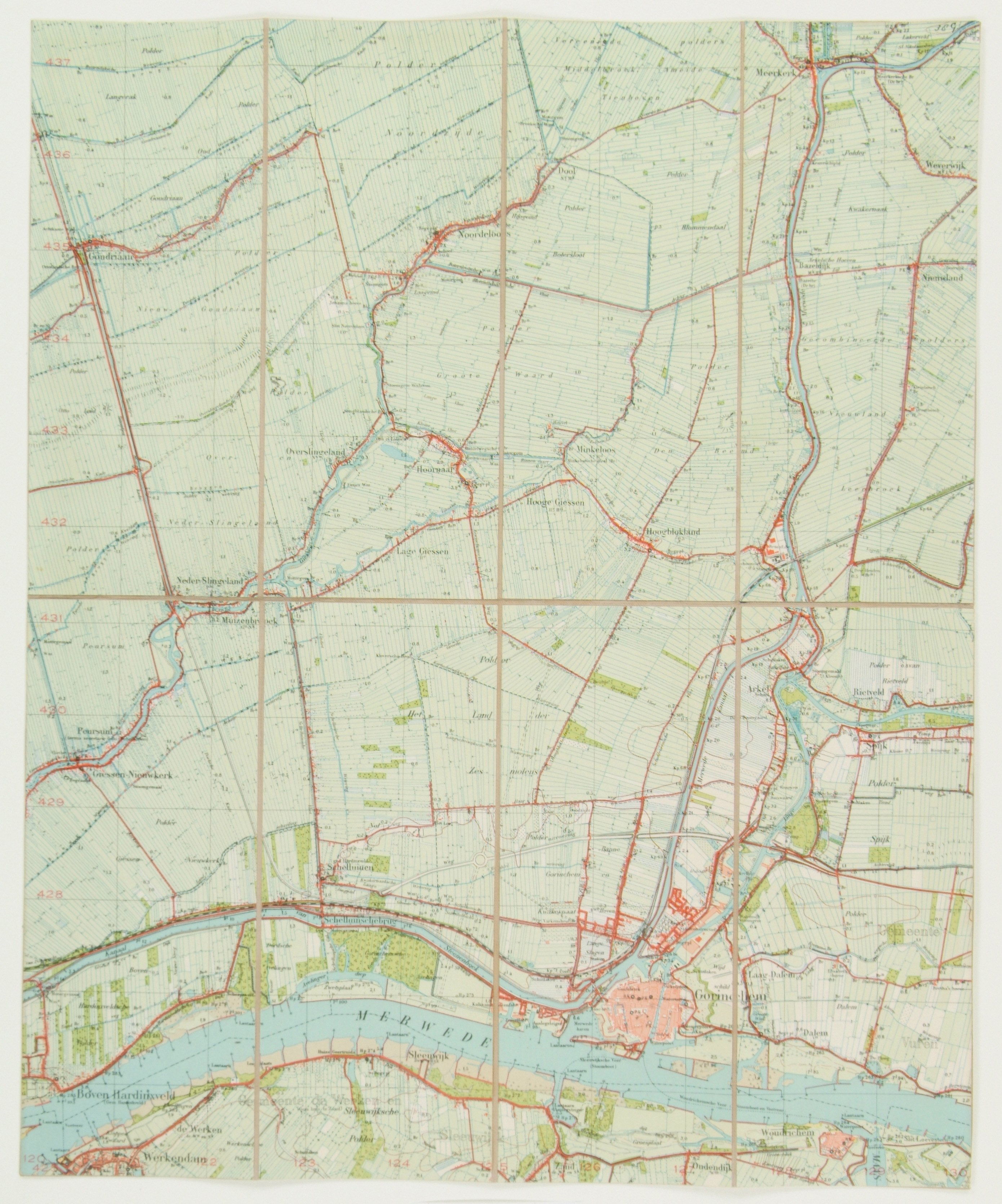- Topografische kaart Gorinchem, rechtsboven Meerkerk, rechtsonder Woudrichem, linksonder Werkendam, linksboven Goudriaan.
