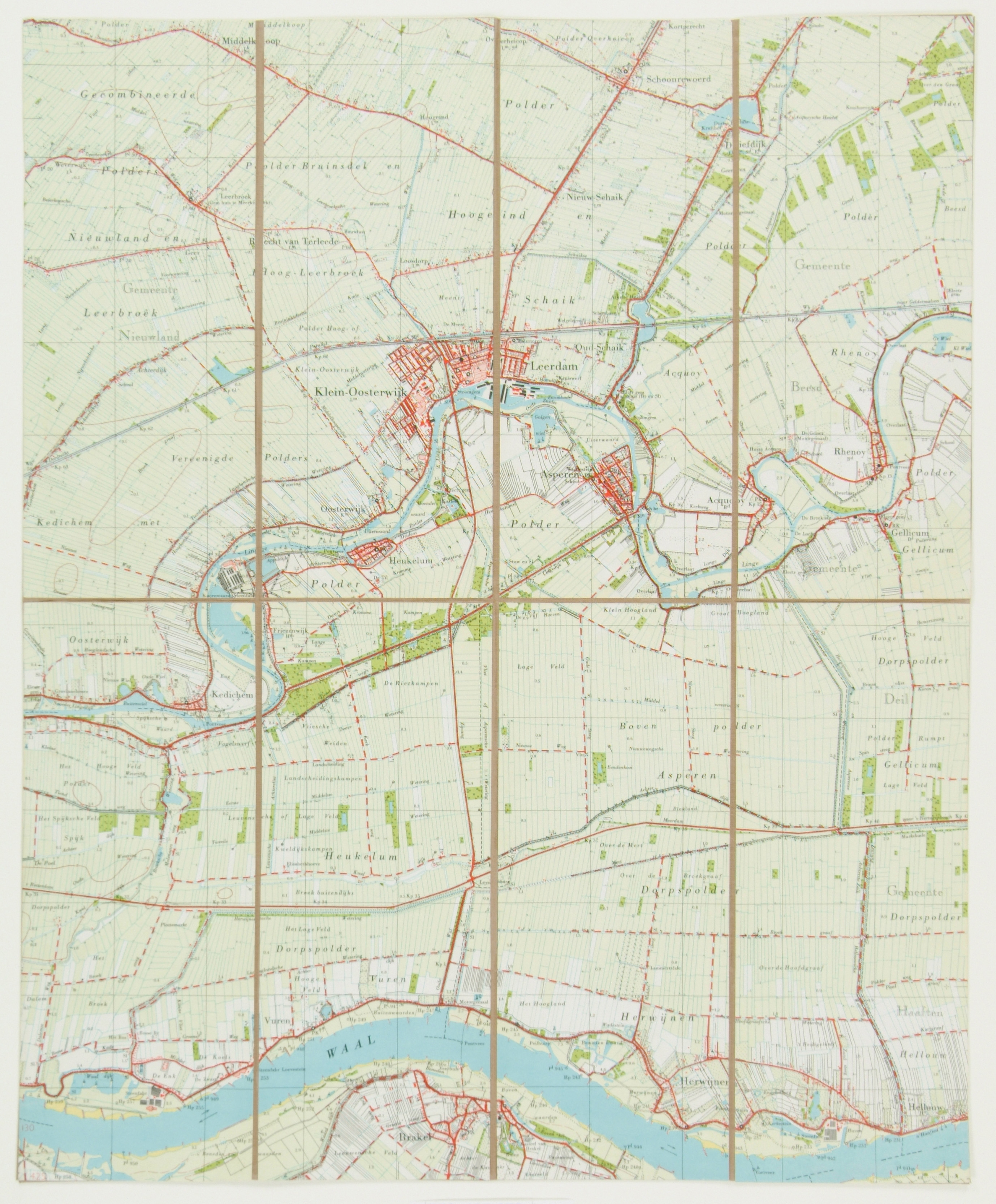 Topografische kaart Leerdam, rechtsboven Diefdijk, rechtsonder Hellouw, linksonder …