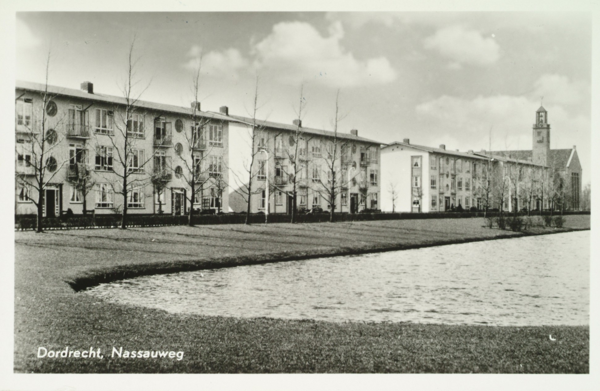 Genomen vanaf de Julianaweg,wij woonden rechts van de foto aan de even kant[niet zichtbaar]op 20c we waren samen met de familie Visser de eerste bewoners op de Nassuaweg.Let op de Ligusterhagen om de vijver
