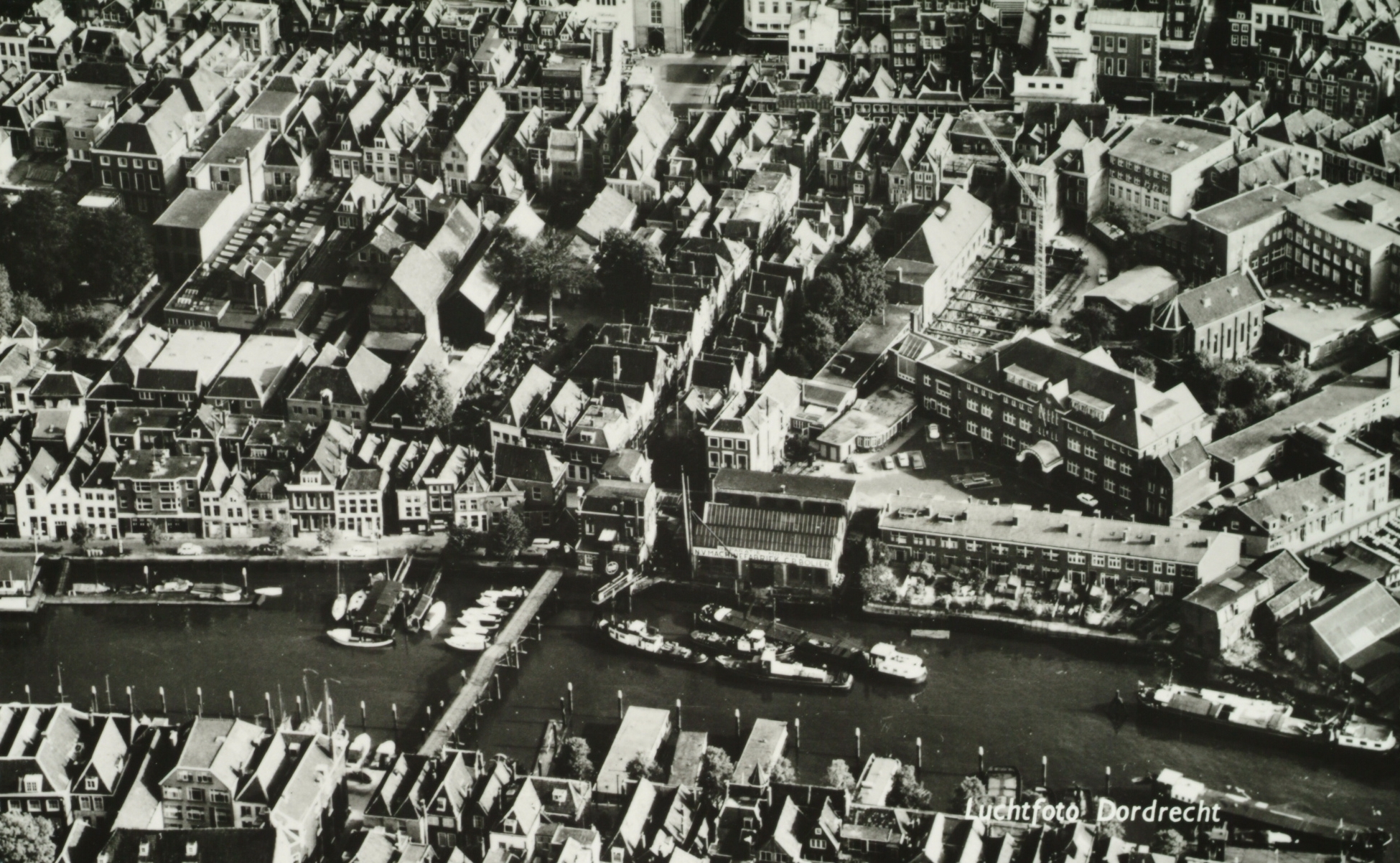 In het midden, rechts van de brug, machinefabriek Bolier,MAK motoren, later verplaats naar de 2e Merwehaven.