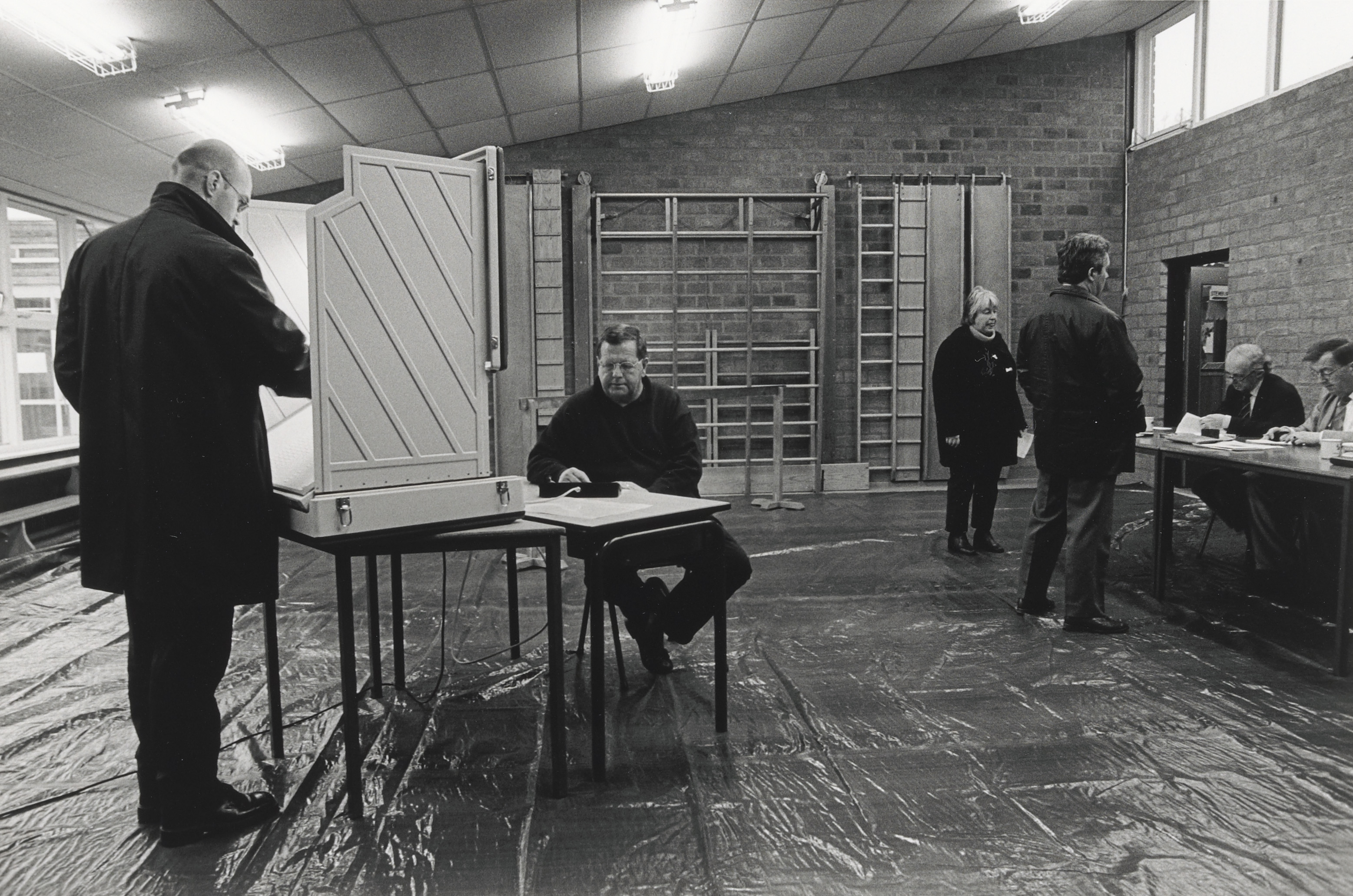 Een stemlokaal in Sterrenburg t.g.v. de gemeenteraadsverkiezingen van 6 maart 2002.