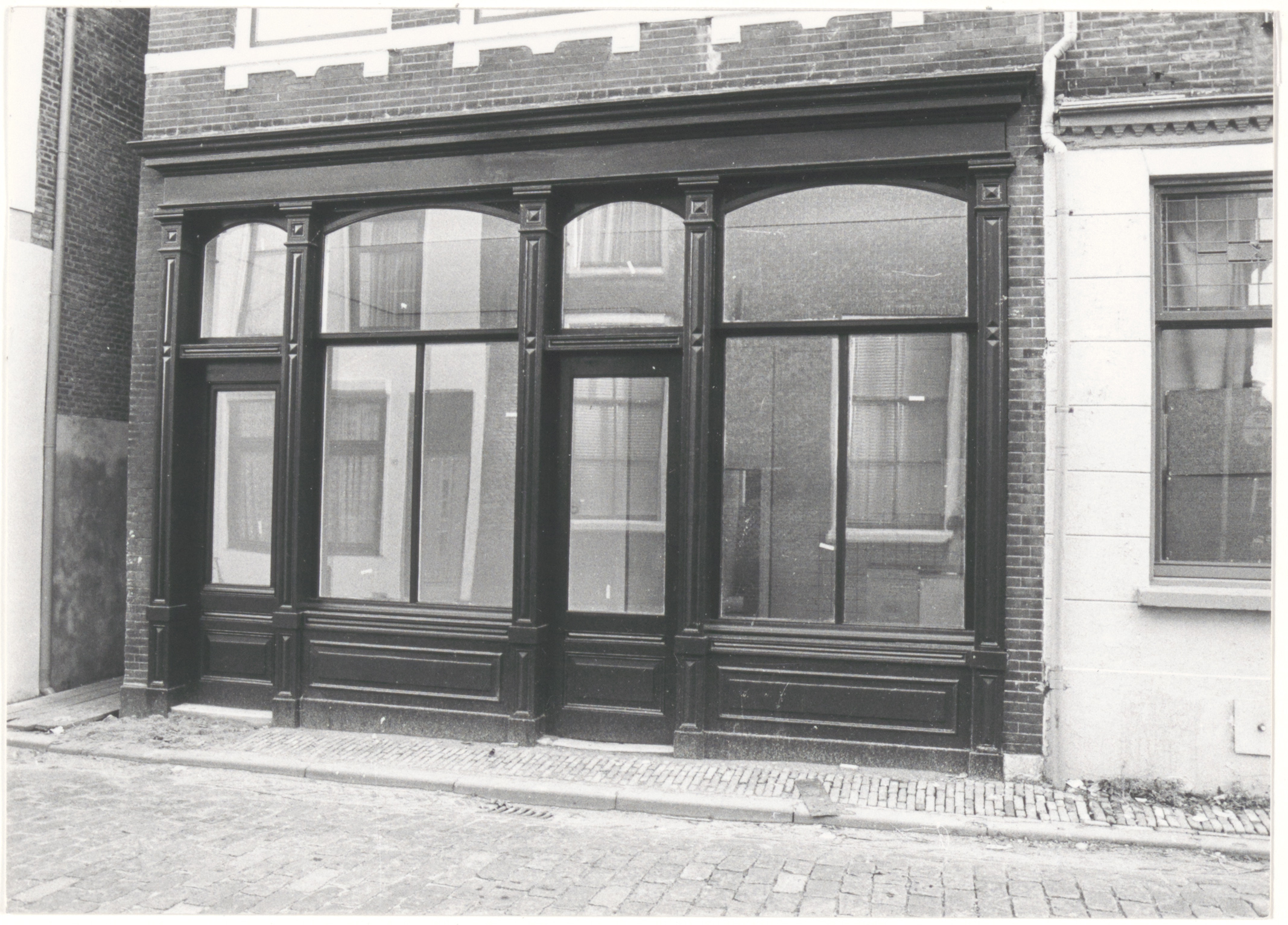 Pui van het huis Varkenmarkt 148 (nr. in 1987). Links een naamloos steegje naar het …