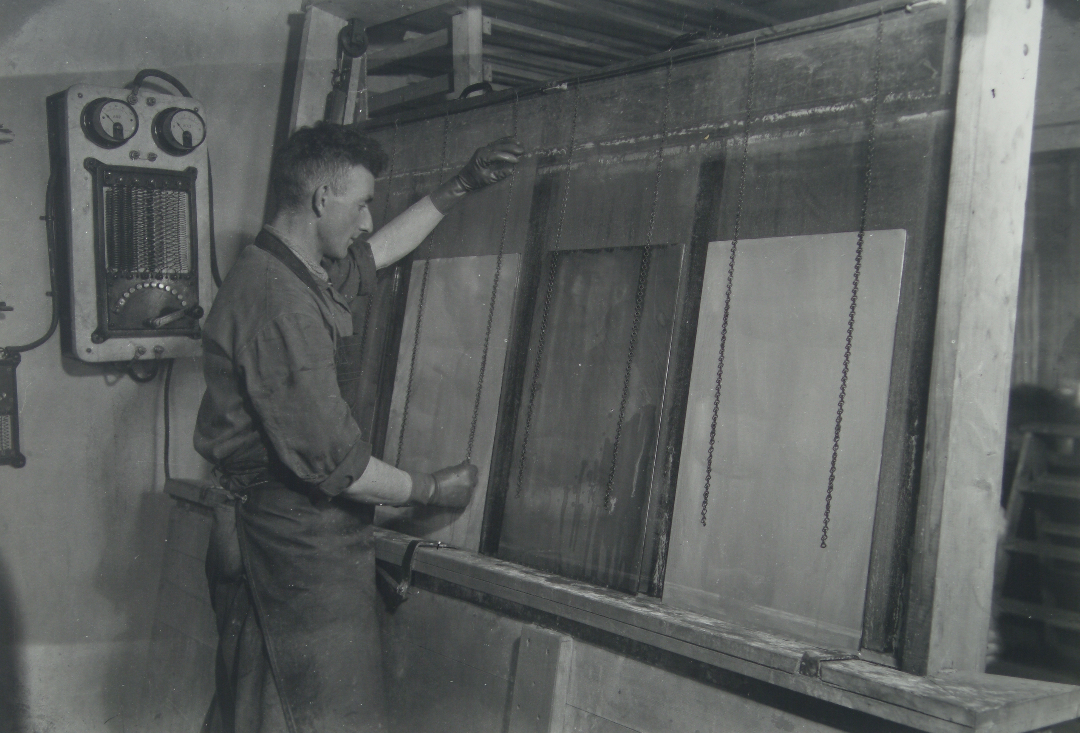 Bewerken van glas in de Dordtsche Glashandel aan de Kuipershaven