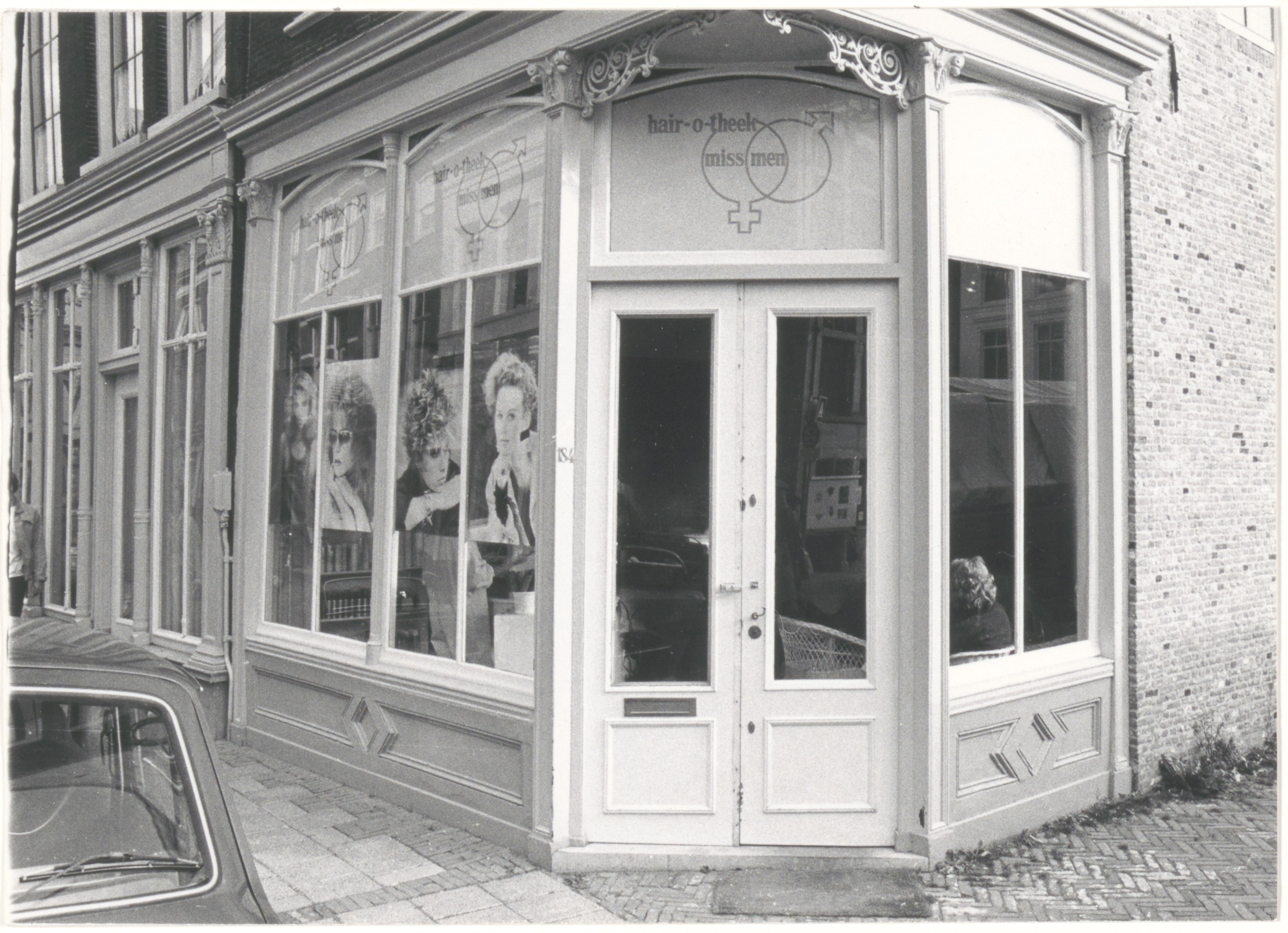 Kapperszaak Hair-O-Theek Miss / Men in de Wijnstraat 184 (nr. in 1987) op de hoek van …