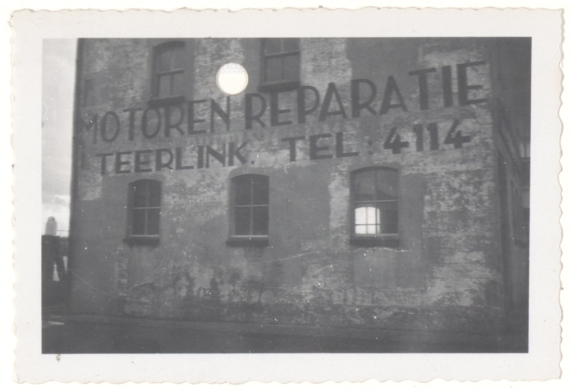 - Reclametekst op de muren van het pand Buiten Kalkhaven 5 (nr. in 1956, nr. 40 in 1988) van Scheepsmotorenreparatie Teerlink.