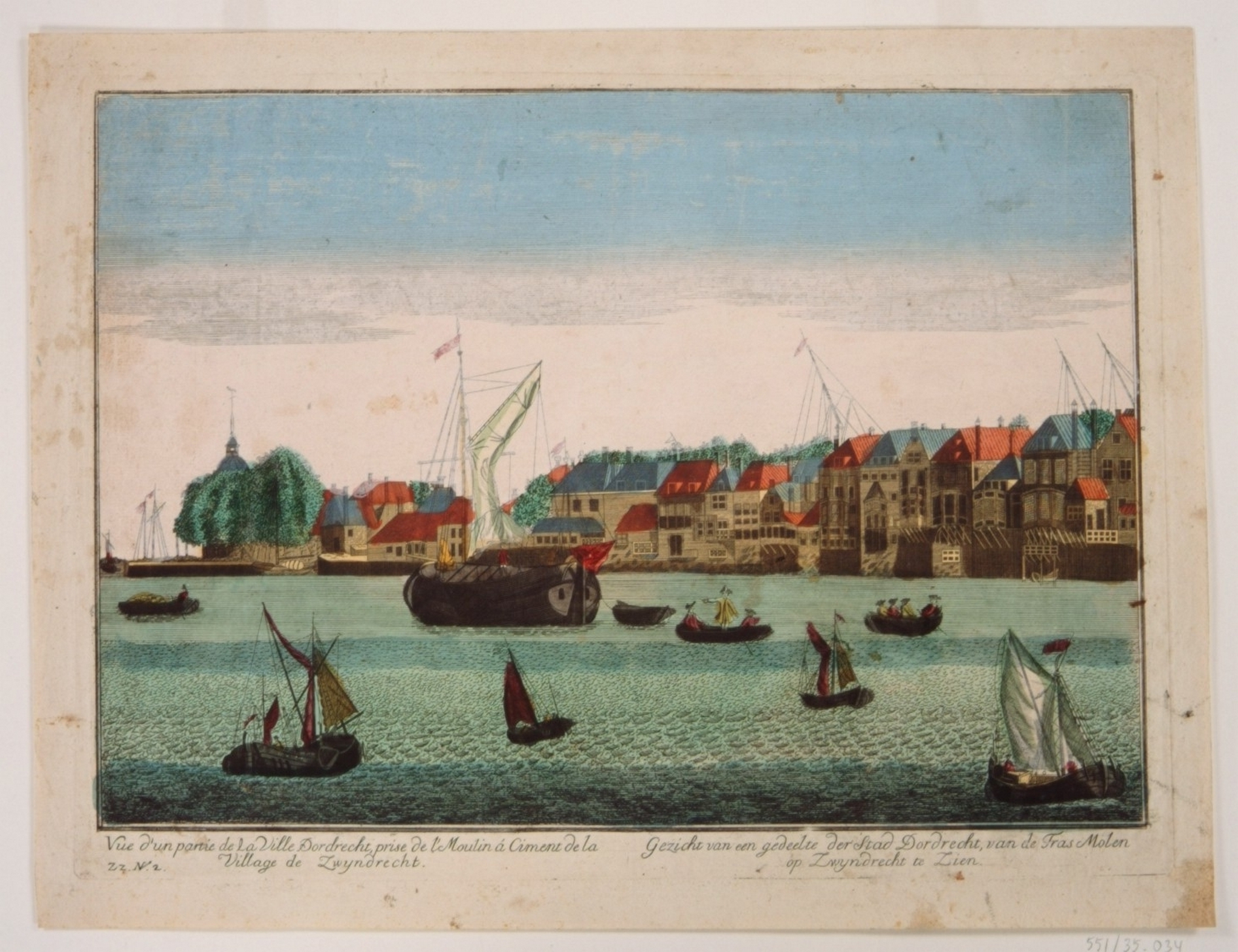- Oude Maas en achterzijde van huizen aan de Wolwevershaven en op het Groothoofd, vanaf de trasmolen in Zwijndrecht, omstreeks 1771