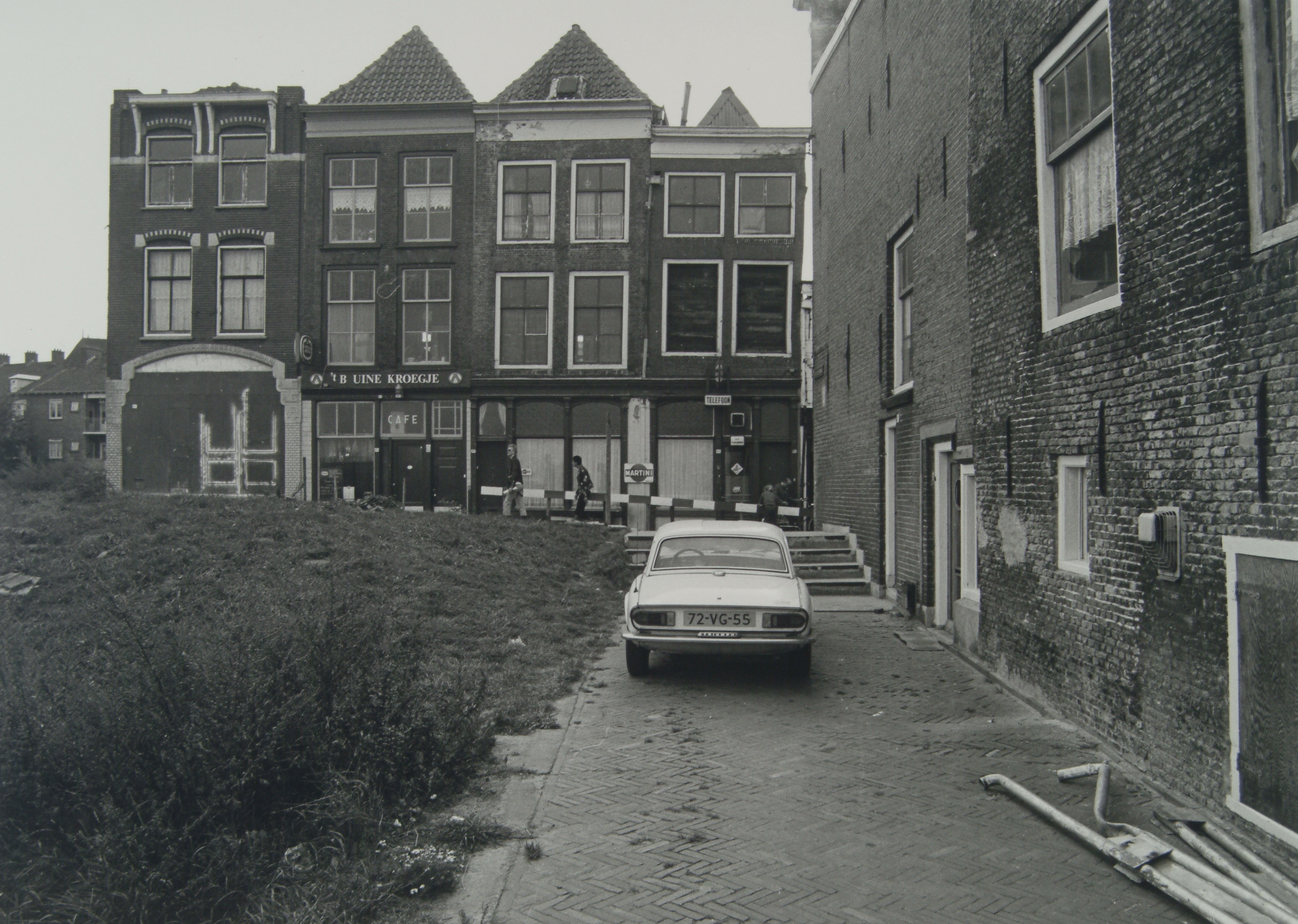 Riedijk gezien vanuit de Hoefijzerstraat links kaalslag gasfabriek