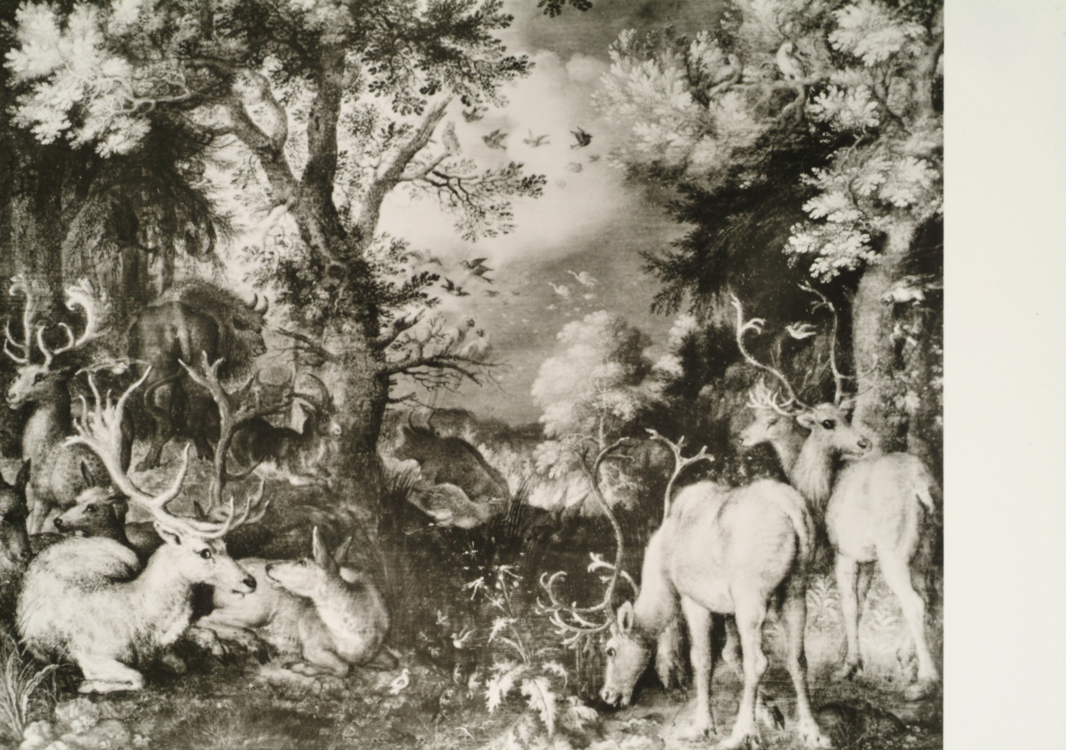 - Schilderij door Roelant Savery (1576-1639): Herten in boomrijk landschap.
